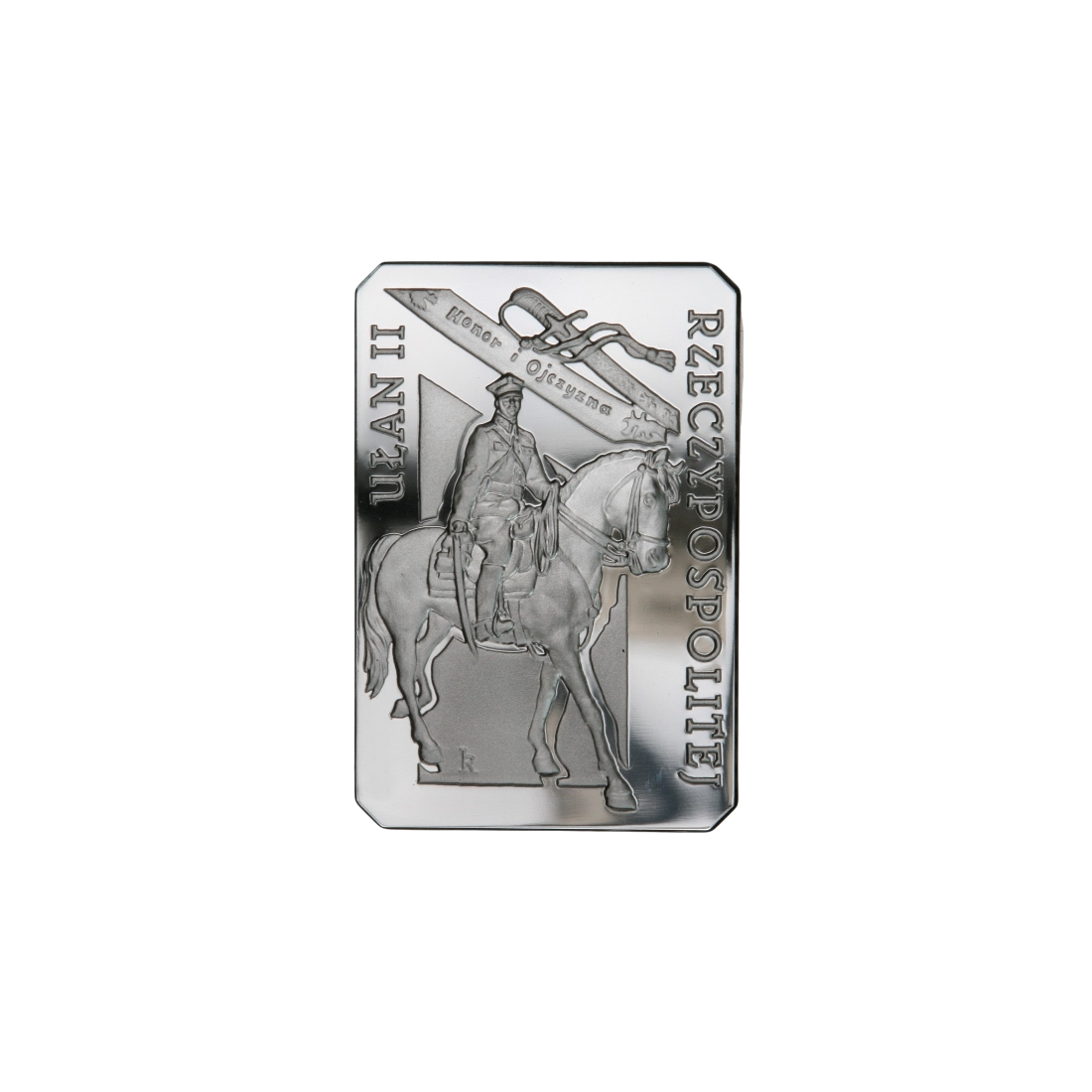 The "Ułan II Rzeczypospolitej" coin was designed by Robert Kotowicz, who captured the spirit of Polish military cavalry. The obverse features an eagle, symbolizing the emblem of the Republic of Poland, against the background of stylized outlines of horses. Next to it are elements of the uhlan's armament and equipment, such as a lance, saber, and carbine. The reverse depicts an image of an uhlan on horseback, holding a saber, emphasizing the heroism and honor of the soldiers of the Republic. In the background, there is a fragment of a saber with the inscription "Honor i Ojczyzna" (Honor and Fatherland), which perfectly reflects the patriotic character of this coin.