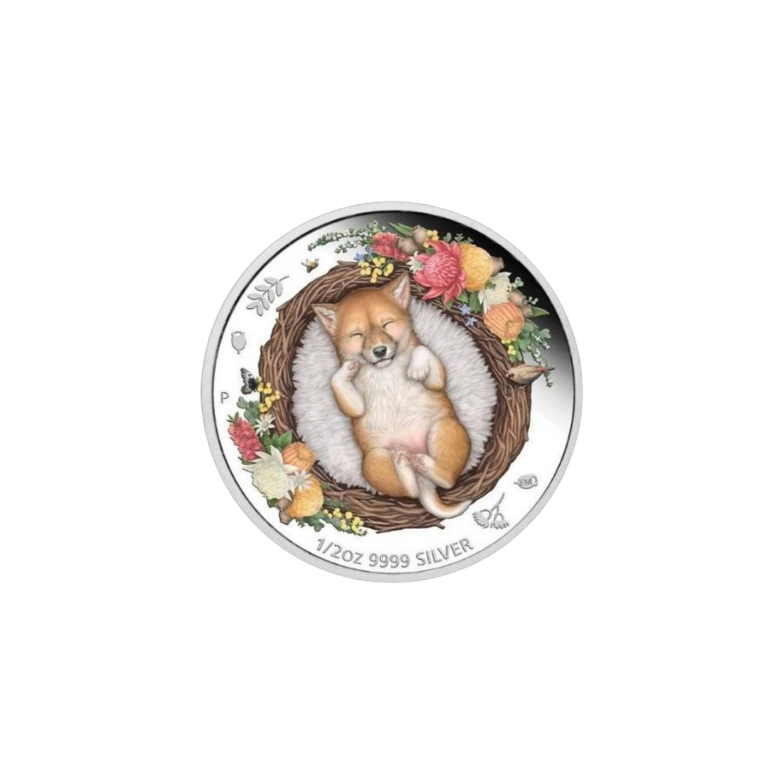 The Sleeping Little Dingo is another stunning product from The Perth Mint. The silver coin is struck from high-quality material, and its weight is ½ ounce. The Sleeping Little Dingo silver coin is part of a series that showcases delightful young animals that inhabit Australia daily.