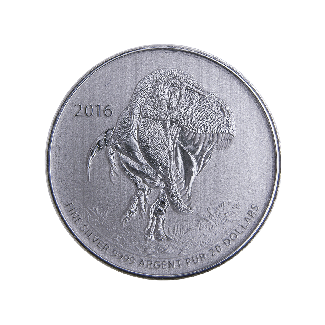 The silver coin with a denomination of 20 dollars, issued by the Royal Canadian Mint in 2016, is part of the "$20 for $20" series and is dedicated to one of the most fascinating dinosaurs – Tyrannosaurus rex. This coin combines paleontological elements with numismatic ones, offering collectors and investors a unique piece with high artistic and historical value.
