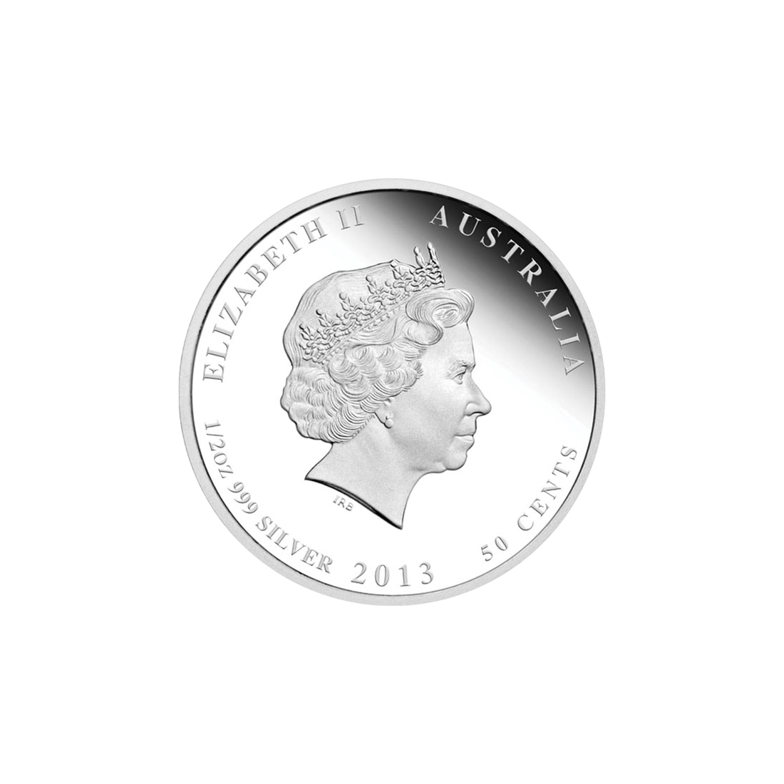 The obverse of the coin features a portrait of Queen Elizabeth II by Ian Rank-Broadley, which is the standard image on coins issued by Perth Mint. Next to the portrait is the inscription "ELIZABETH II" and information about the country of issue "AUSTRALIA", the denomination "50 CENTS", and the year of issue "2013". Additionally, the marking "1/2 oz 999 SILVER" is included, indicating the weight and fineness of the silver.