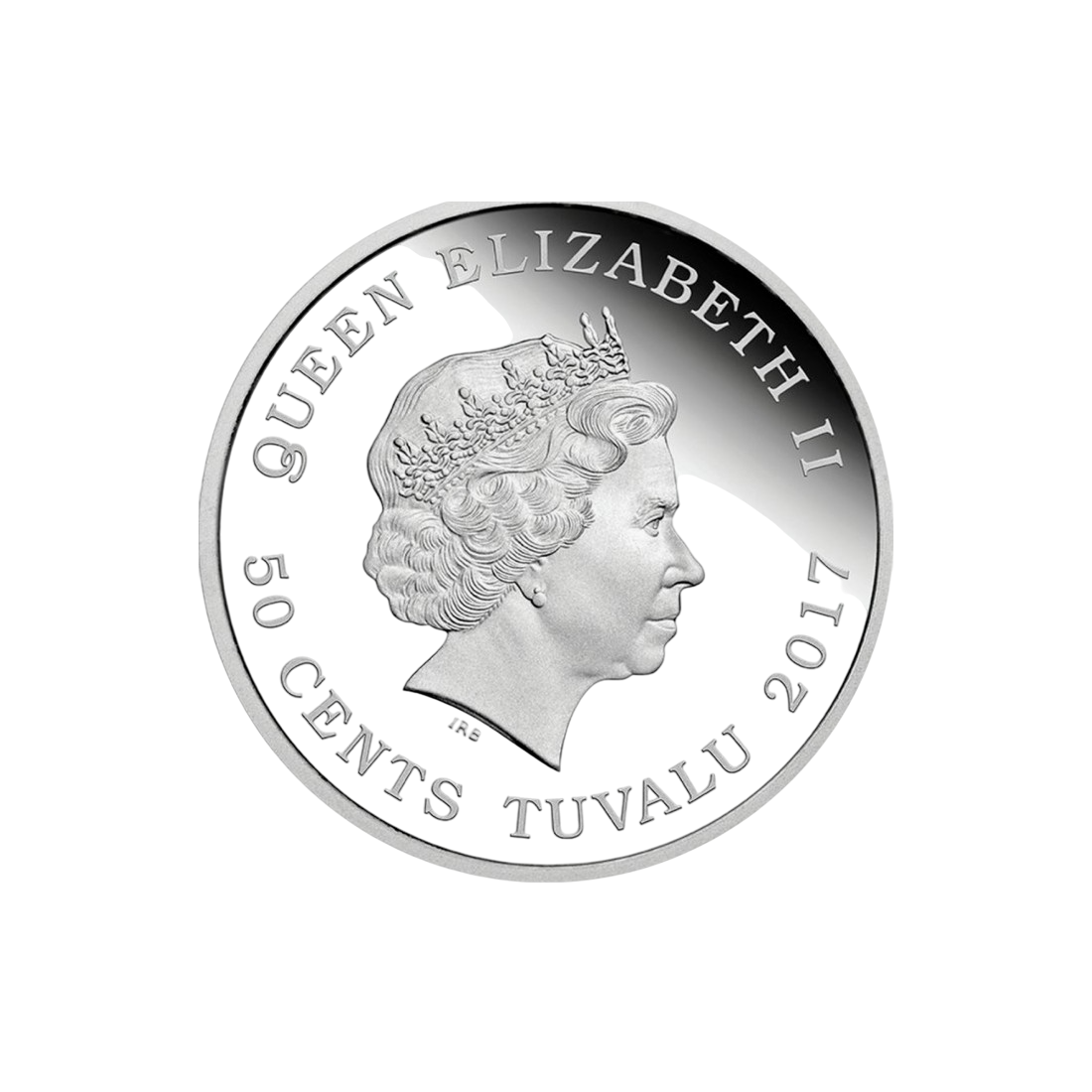 The 50-cent collector's coin, issued by Tuvalu in 2017, features a young harp seal and is part of the "Polar Babies" series. Minted from the highest quality 999.9 silver in proof quality, it is characterized by a colorful image and a limited mintage of 5,000 pieces.