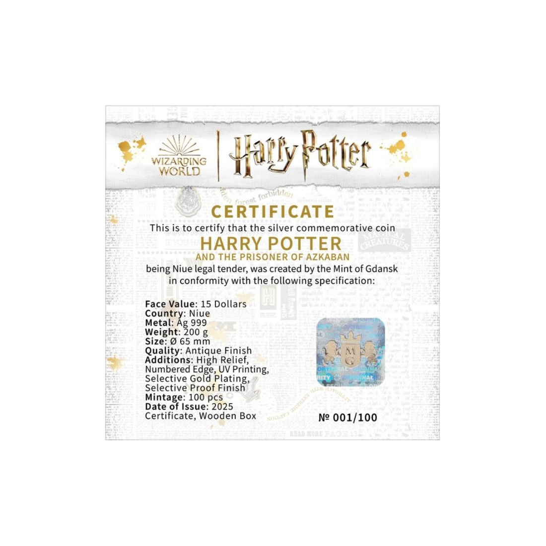 The 200 gram Silver Harry Potter & the Prisoner of Azkaban - 24h Shipping! is a combination of investment metal, unique design, and prestigious license. Due to its low availability, elegant design, and certified origin, it is both a valuable addition to an investment portfolio and an impressive exhibit for collectors.