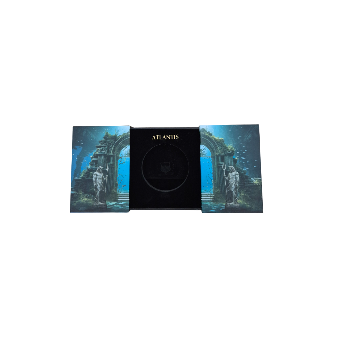 The weight of 5 ounces of silver and the 999 fineness guarantee the real material value of the coin, which can effectively protect capital against inflation and market fluctuations. The low mintage of only 249 pieces worldwide makes this specimen exceptionally rare, which may translate into an increase in value in the future. Interest in the theme of Atlantis and the unique sliding mechanism make the coin attractive to both investors and collectors.