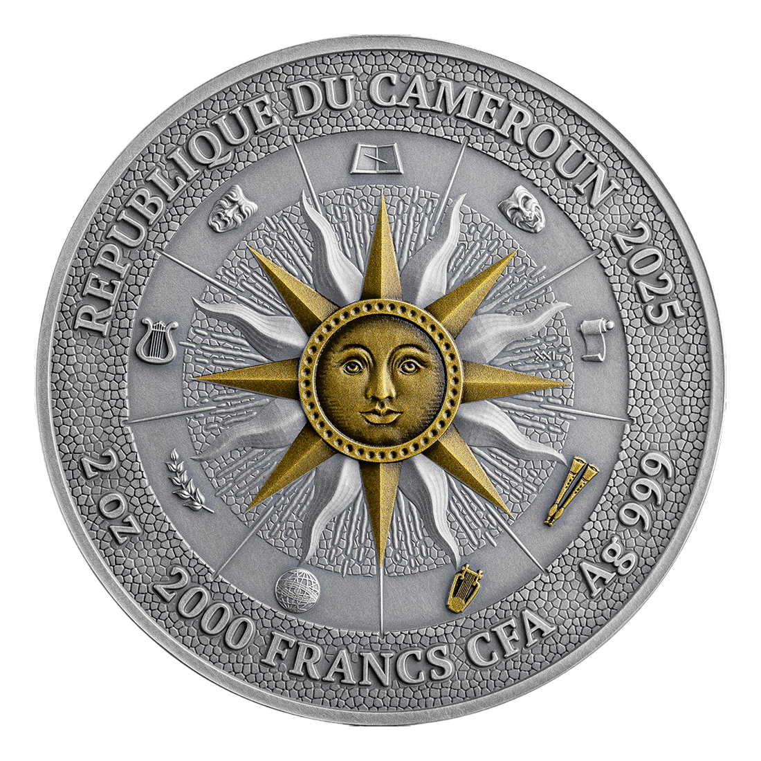 The 2025 Cameroon 2 oz Silver The Nine Muses: Terpsichore & Euterpe - 24h Shipping! is a perfect combination of aesthetics and investment value. Thanks to masterful composition and the use of noble materials, it combines the advantages of a collectible object and an investment asset. It is an ideal proposition for those seeking physical asset security with additional artistic value.