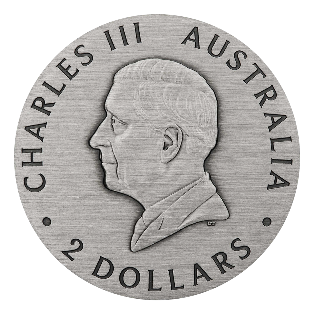 The silver coin shows two intricately detailed dragons surrounding the central intarsia from the pearl mass, which creates a striking visual effect. Dragons are presented with dangerous facial expressions, winding bodies and delicate scales, which adds traffic and power impressions. The mirror finish of the trial coin emphasizes the patterns of dragons, while the intarsia with pearl provides a light contrast, symbolizing wisdom and balance. Reverse contains the image of King Charles III, adding a bit of elegance to the entire project. A numbered authenticity certificate is attached to the coin, placed in a decorative box and a illustrated mailing packaging.