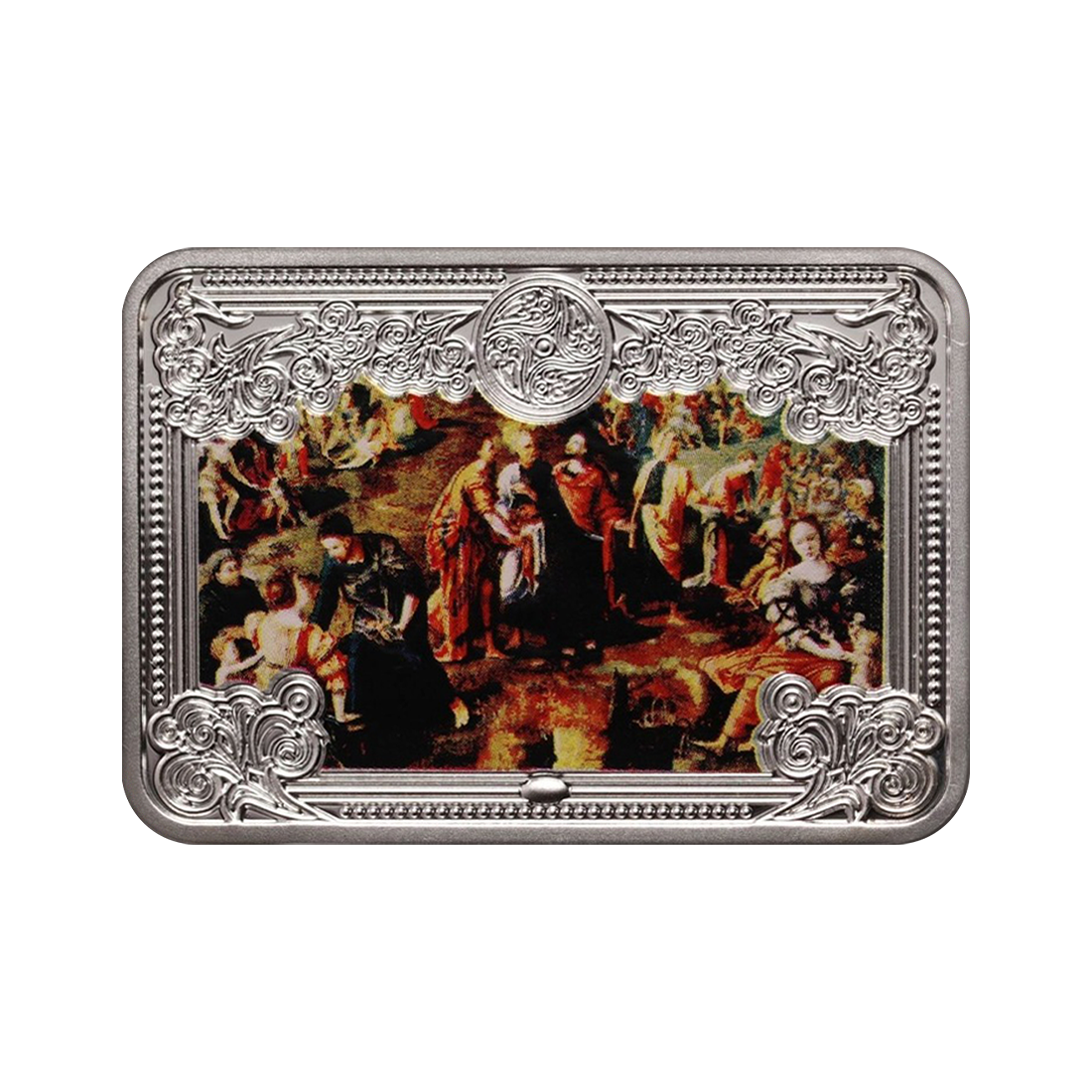 The presented collection consists of four silver coins, each weighing one ounce, which together form a cohesive whole in the shape of a circle. The reverse of the colorized coins depicts a scene with snakes winding among blooming cherry branches – symbols of longevity, rebirth, and happiness in Chinese culture. Each segment features a snake in a different color on a background fragment, which becomes an artistic composition when all parts are assembled. The obverse of each coin features a portrait of His Majesty King Charles III, designed by Dana Samson, along with the denomination, year of issue, weight, and silver fineness. The coins have a subtly finished proof surface, with a contrast between the mirror background and matte details. The entire set is presented in a stylish square case with a transparent lid, allowing for the display of the full image, and includes a numbered certificate of authenticity.