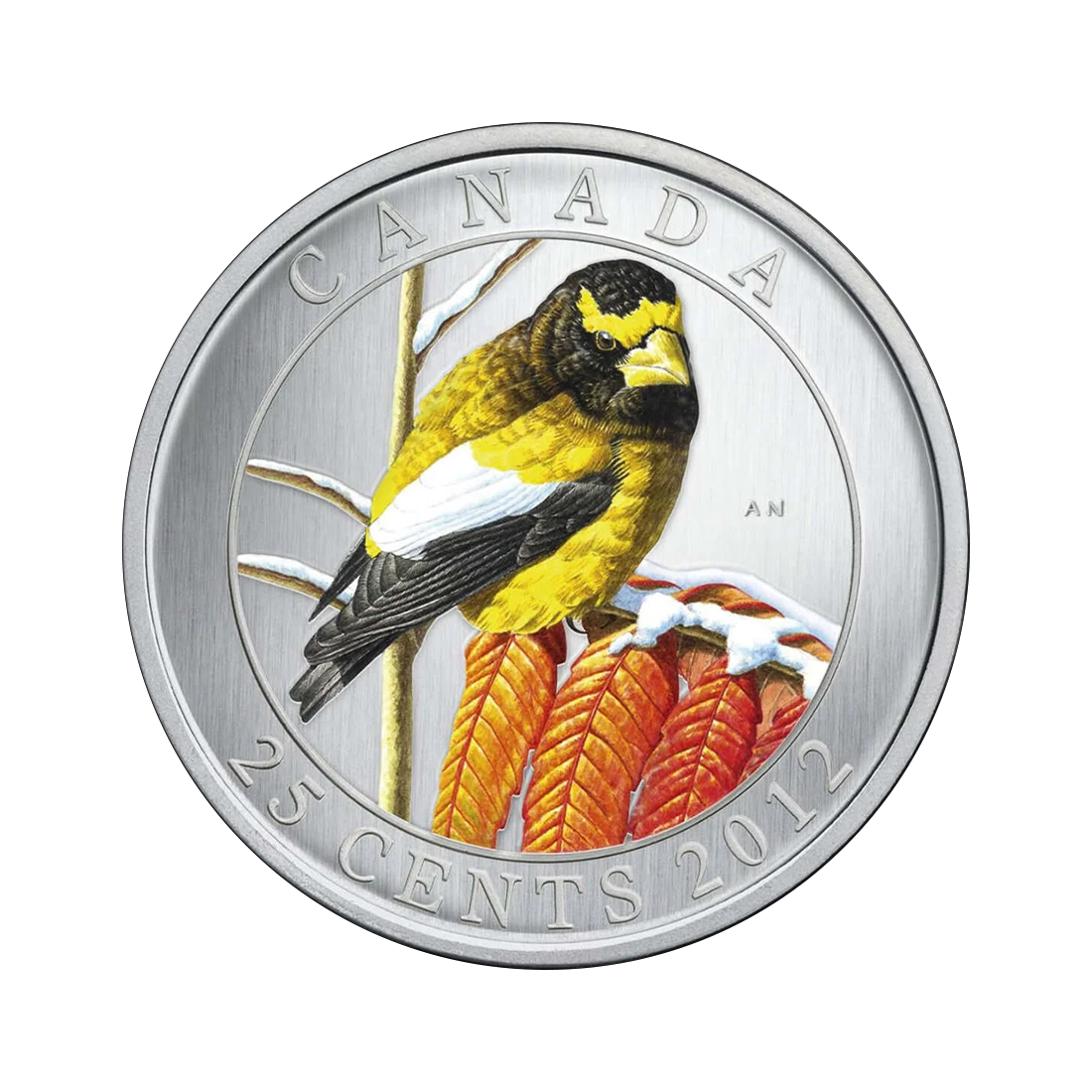 Appearance of the 2012 25c Birds of Canada: Evening Grosbeak - Coloured Coin - 24h Shipping!