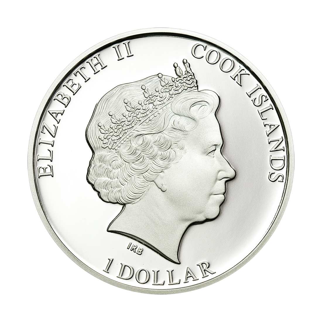 Obverse: The obverse of the coin features a portrait of Queen Elizabeth II at the age of 77, without a crown, with a necklace and earrings, facing right. It is surrounded by the inscriptions: "ELIZABETH II COOK ISLANDS" and "1 DOLLAR".