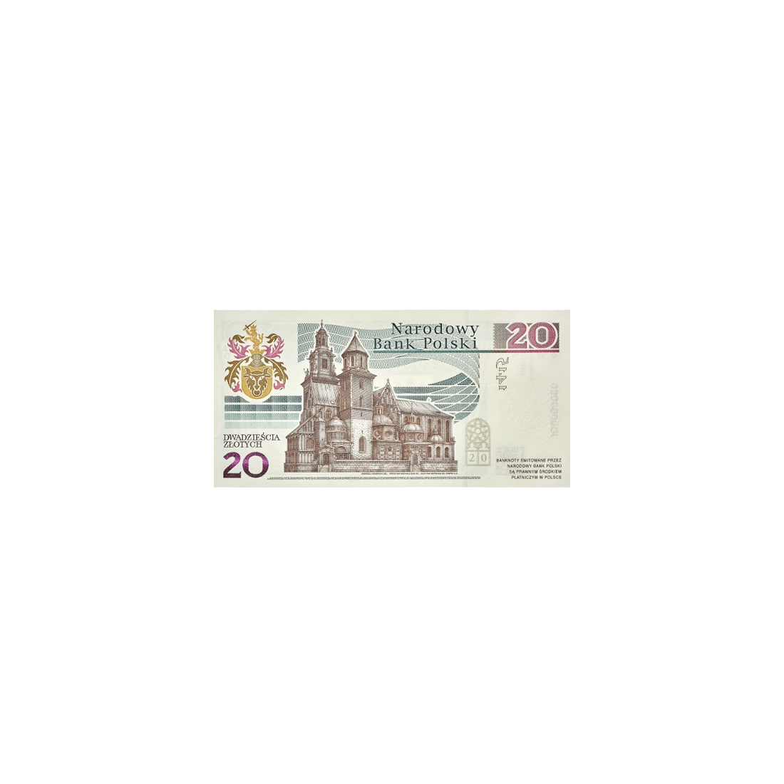 Tylną stronę banknotu zdobi wizerunek Katedry Wawelskiej, miejsca koronacji i pochówku królów Polski. Obok katedry znajduje się fragment witraża, również wykonany techniką grawerowania laserowego. W lewym górnym rogu widnieje herb Wieniawa, którym posługiwała się rodzina Długoszów.
