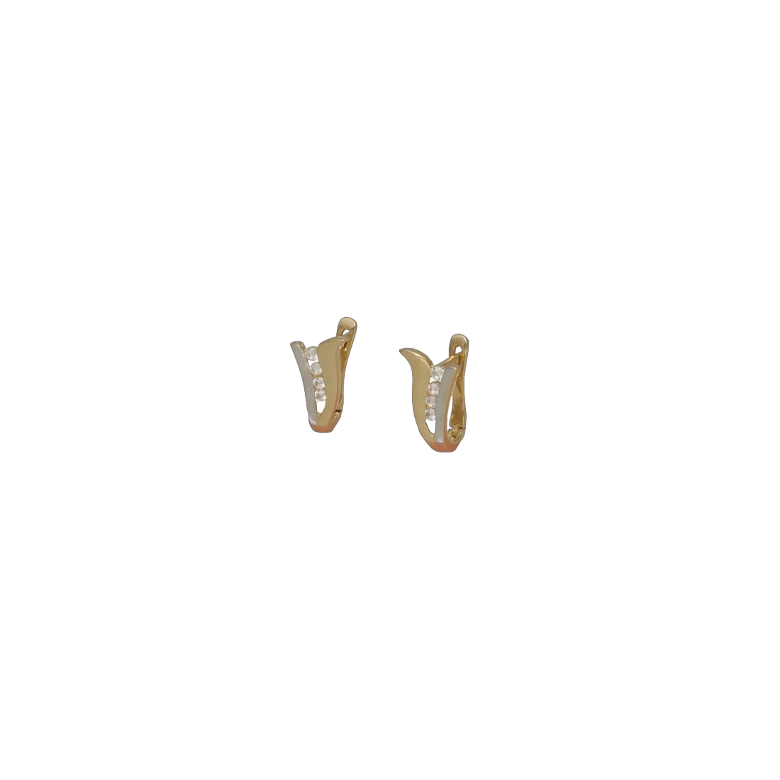 Fascynujące kolczyki wykonane w całości z żółtego i białego złota 585 / 14K z cyrkoniami w kolorze białym.