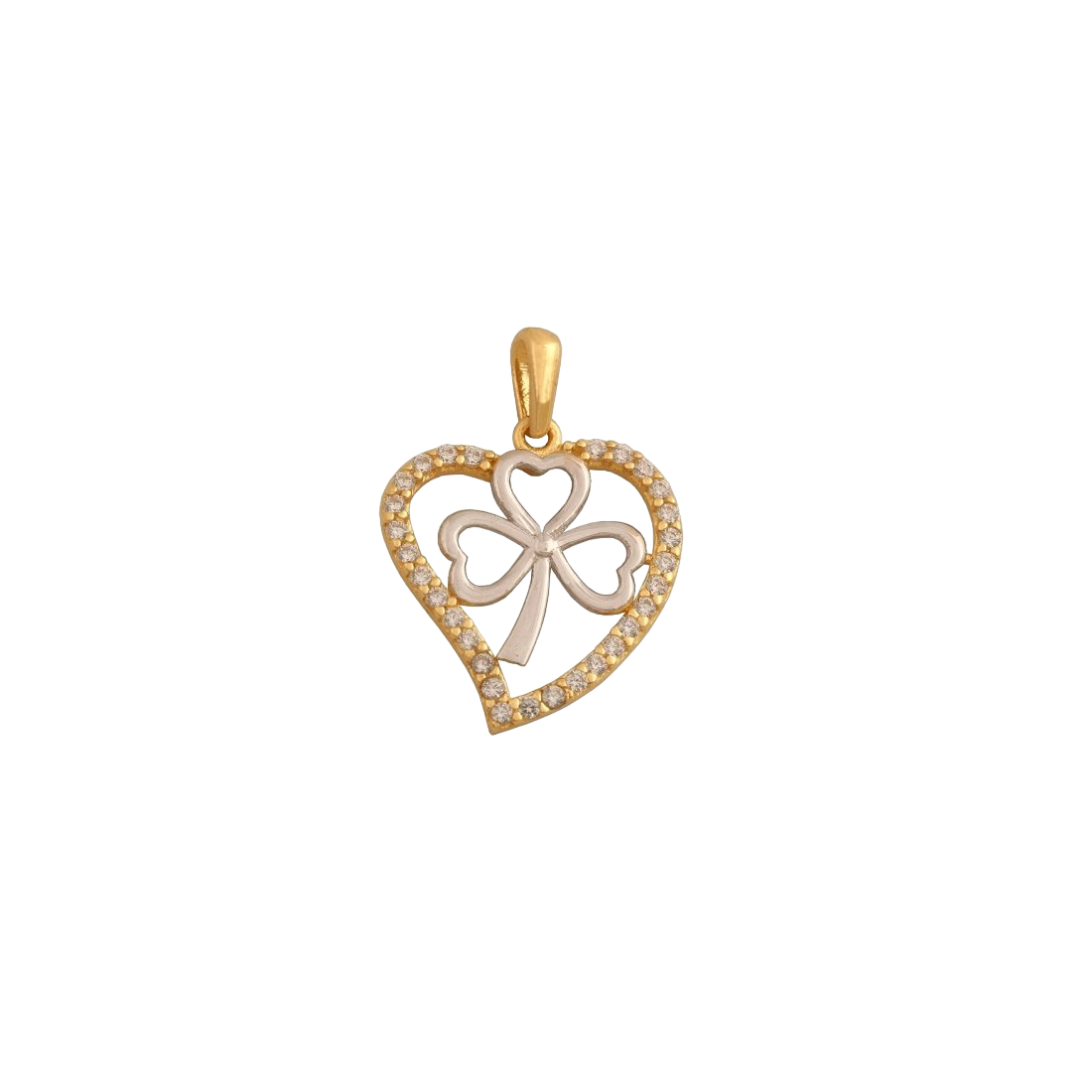 Delikatny wisiorek wykonany w całości z żółtego i białego złota 14k/585 z cyrkoniami w kolorze białym.