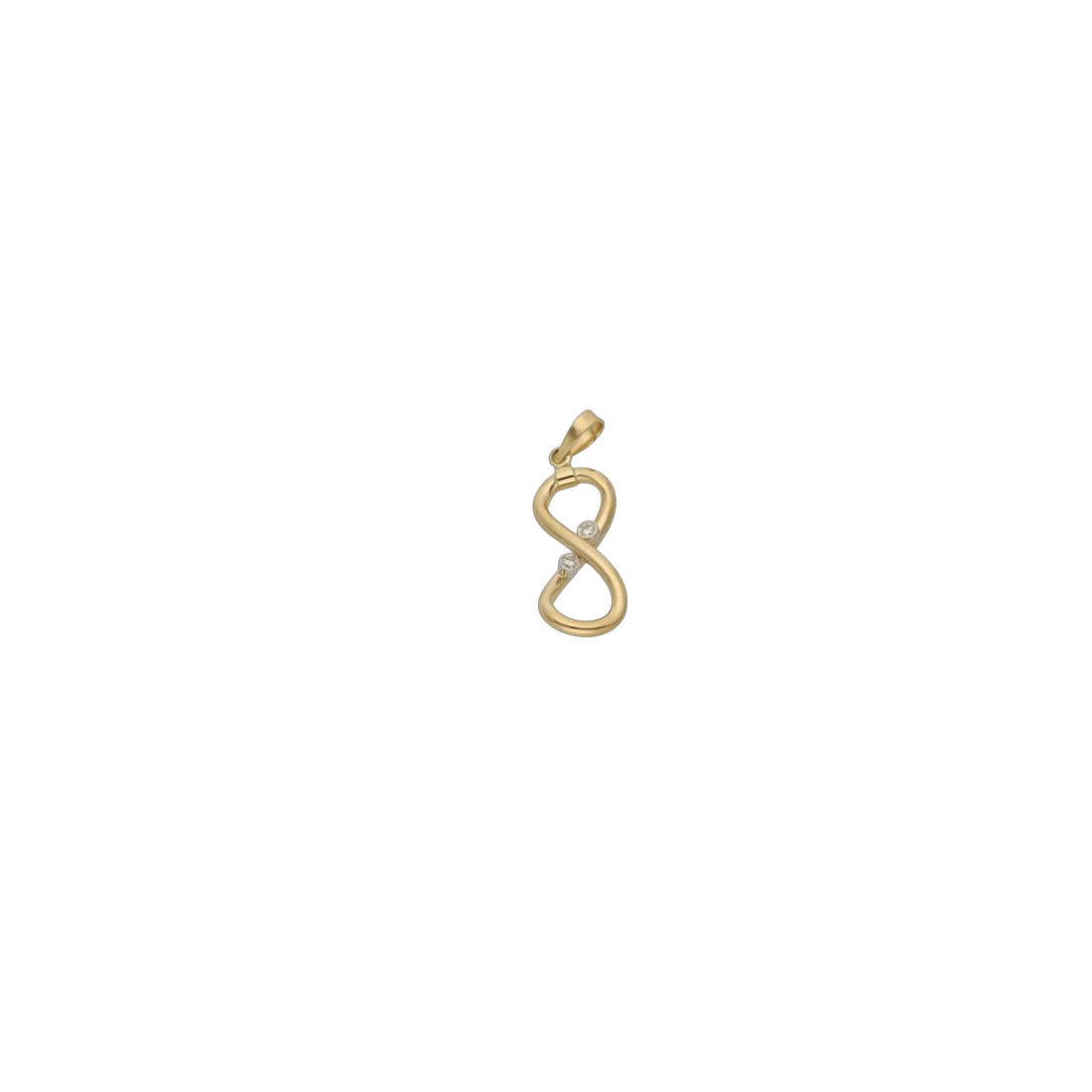 Atrakcyjny wisiorek nieskończoność wykonany w całości ze złota o próbie 0,585 / 14 karatów z cyrkoniami w kolorze białym.