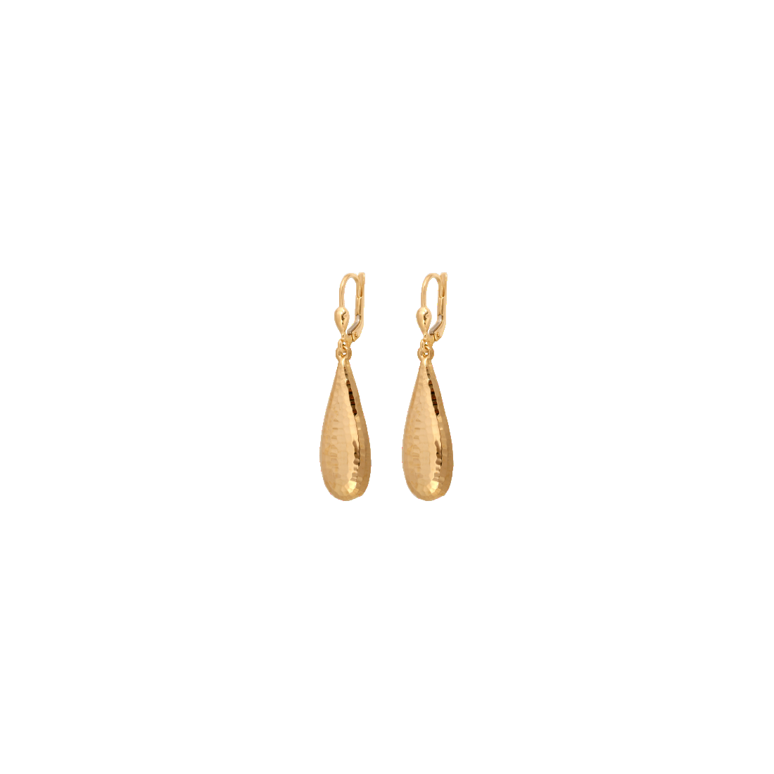 Trendy kolczyki wiszące wykonane w całości ze złota o próbie 0,585 / 14 karatów. Tłoczone kolczyki łezki. Tył wklęsły.