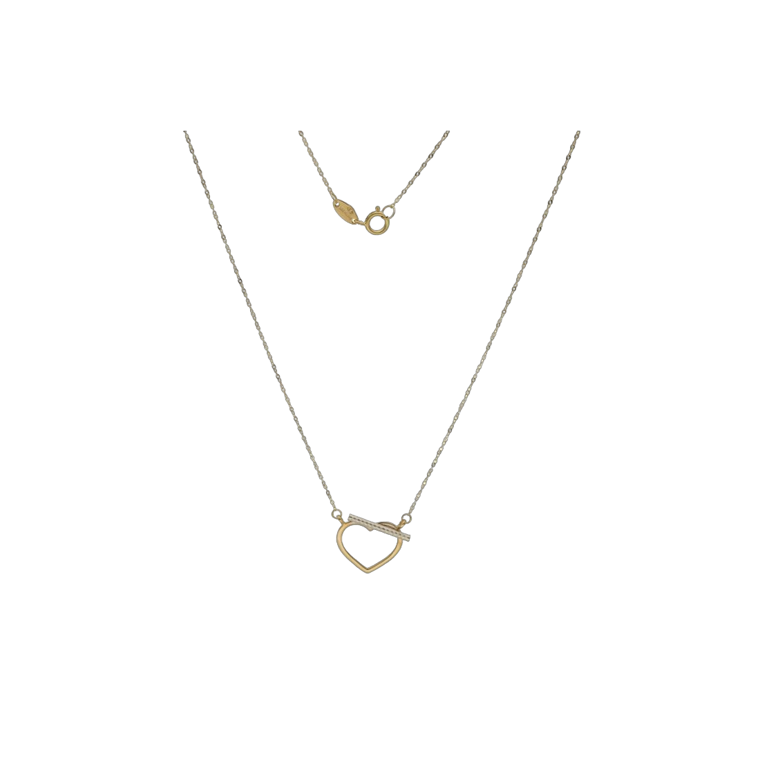 Naszyjnik łańcuszkowy z motywem ozdobnym - serca wykonany w całości ze złota (żółtego i białego) o próbie 0,585 / 14 karatów.