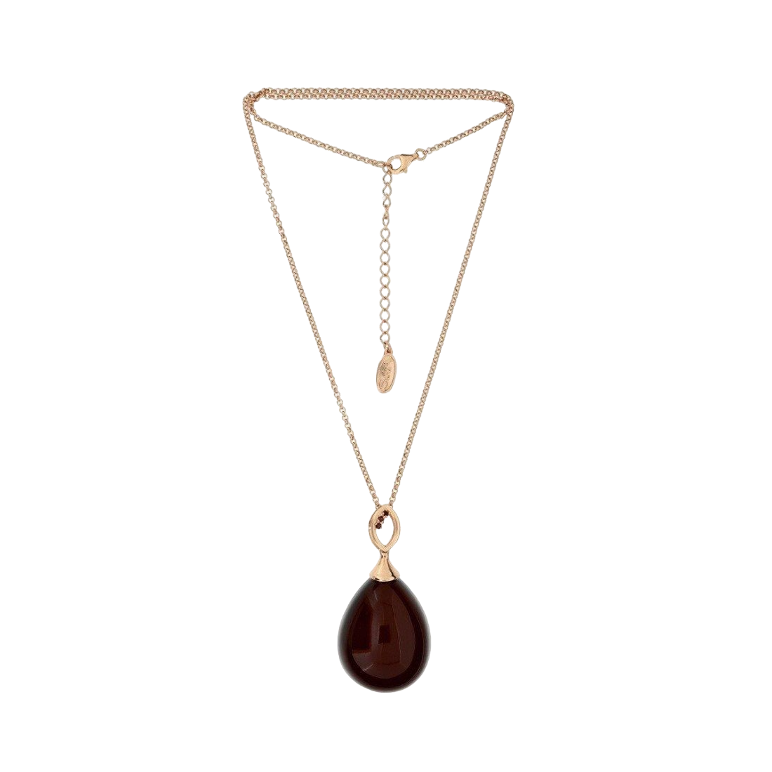 Elegancki naszyjnik wykonany z pozłacanego srebra próby 925 z naturalnym certyfikowanym bursztynem bałtyckim w kolorze szlachetnej wiśni.
