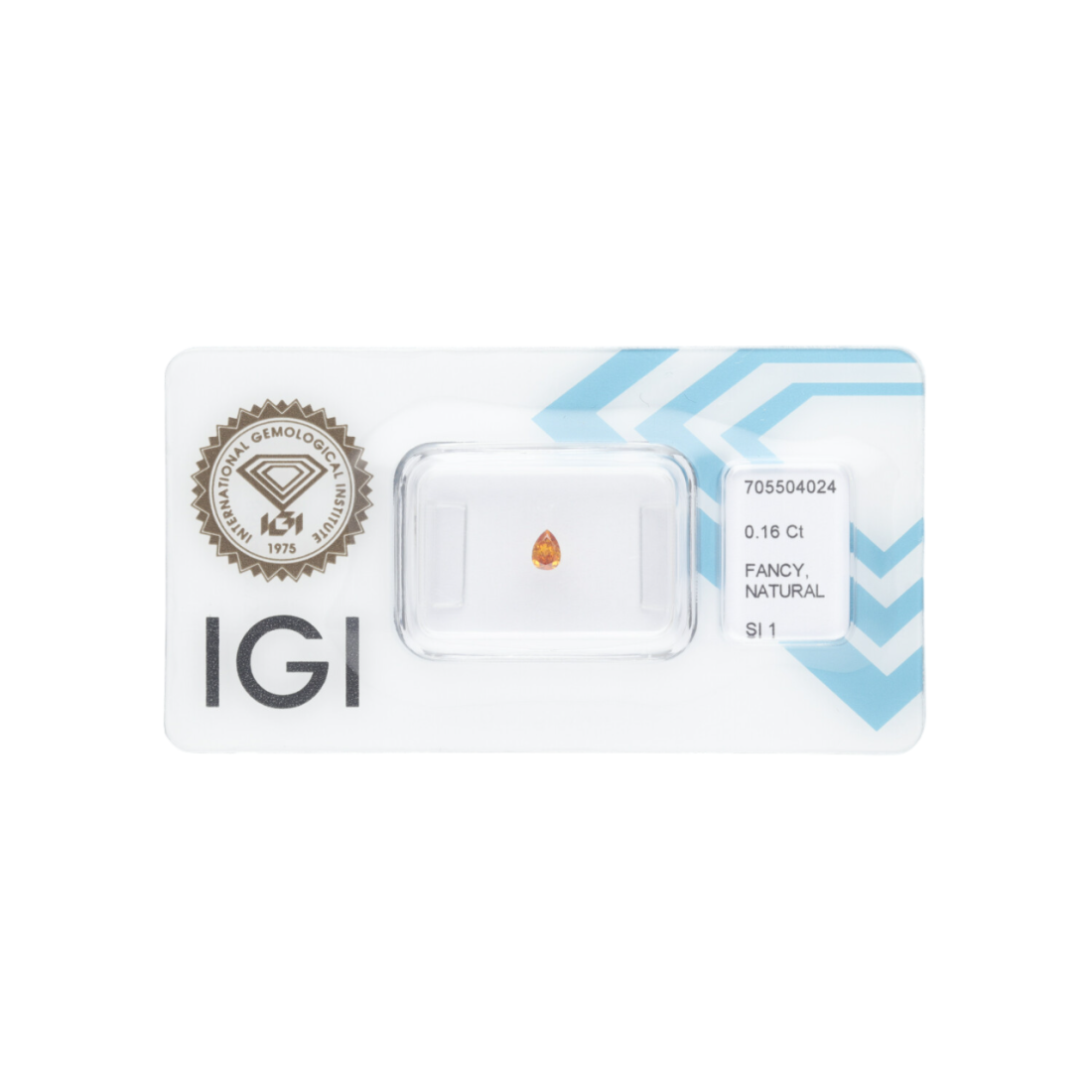 Diament naturalny 0,16 CT / Natural Fancy Intense Yellowish Orange / Pear Modified Brilliant / SI1 / G - wysyłka 24 h!