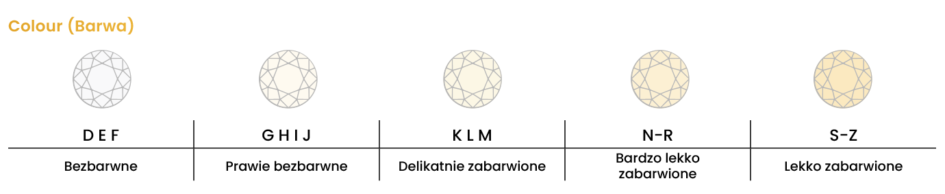 1. Barwa (Colour) – najważniejszy parametr przy ocenie wartości diamentów bezbarwnych oraz diamentów w kolorach fantazyjnych.