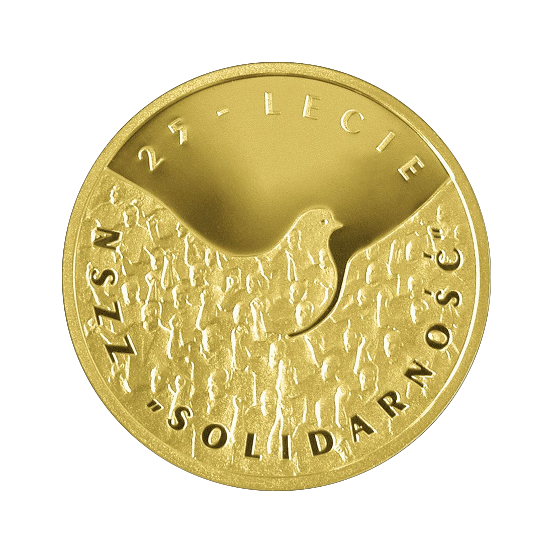 Złota moneta, wydana przez Mennicę Polską w 2005 roku, upamiętnia 25. rocznicę powstania NSZZ „Solidarność” – ruchu, który odegrał kluczową rolę w przemianach społeczno politycznych Polski w latach 80. XX wieku. Emisja ta stanowi wyraz uznania dla siły zjednoczenia obywatelskiego i wartości, które przyczyniły się do przezwyciężenia komunizmu. Moneta weszła w skład serii Polska droga do wolności i dostępna była w limitowanym nakładzie, co czyni ją szczególnie cenionym przedmiotem kolekcjonerskim. Lustrzany stempel proof podkreśla artystyczny i pamiątkowy charakter tej emisji. Wydanie monety symbolizuje hołd dla wartości takich jak solidarność, godność i wspólnota społeczna, które przyczyniły się do odzyskania suwerenności. Stanowi nie tylko walor numizmatyczny, ale jest również niezwykle ważnym nośnikiem pamięci o jednym z najważniejszych zrywów w polskiej historii.