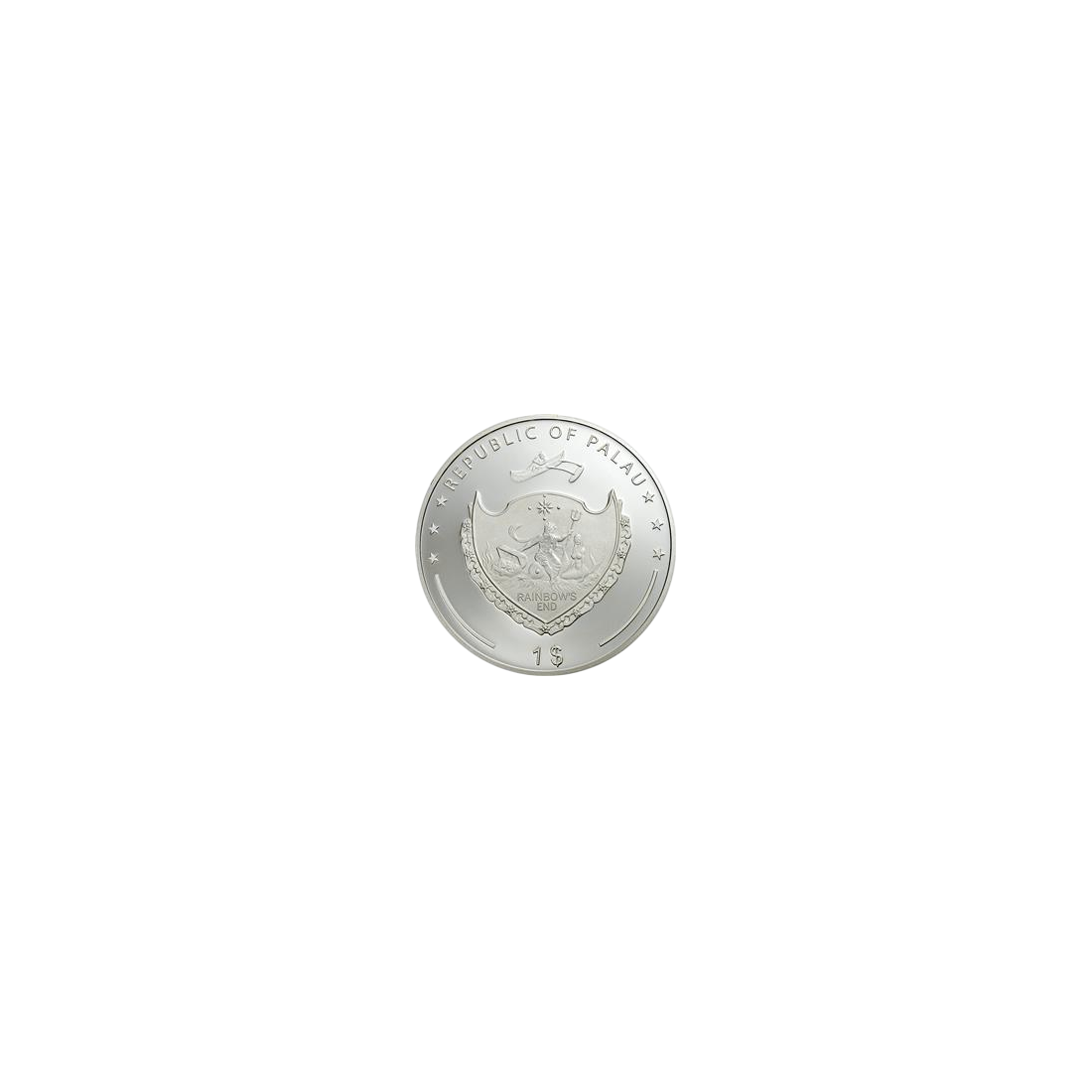 Na awersie monety znajduje się herb Republiki Palau, otoczony napisem "REPUBLIC OF PALAU". Poniżej umieszczono napis "RAINBOW'S END" oraz wartość nominalną "1$".