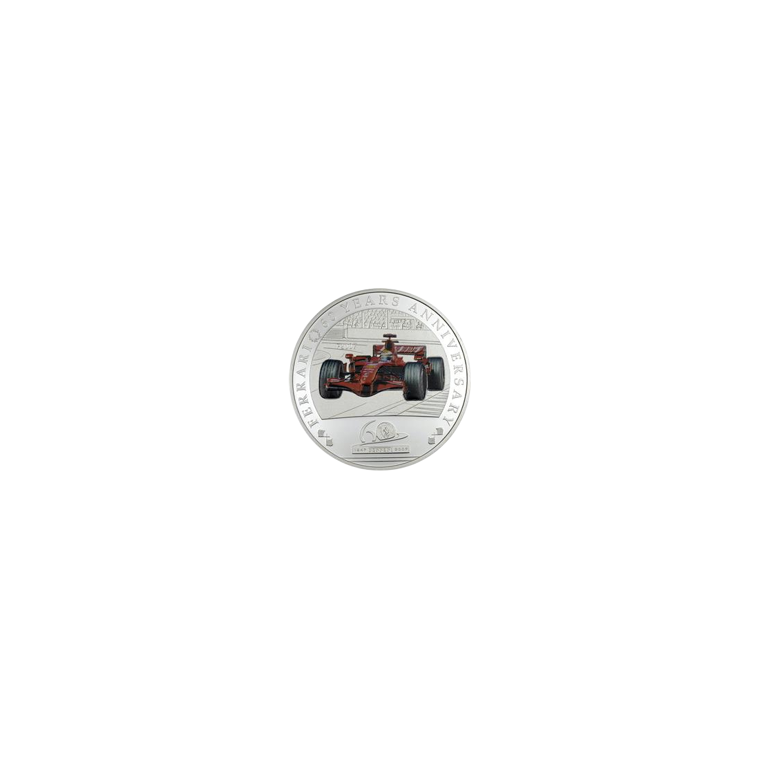 Rewers monety przedstawia wizerunek bolidu Ferrari F2007 z numerem "60", symbolizującym 60-lecie istnienia zespołu. W tle widnieją napisy: "FERRARI 60 YEARS ANNIVERSARY", "F2007", "60", "1947 Ferrari 2007", podkreślające jubileusz i znaczenie modelu F2007 w historii zespołu.