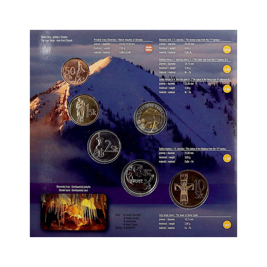 Nominał: Monety czeskie: 50, 20, 10, 5, 2, 1 koron, 50 halerzy; Monety słowackie: 10 Sk, 5 Sk, 2 Sk, 1 Sk, 50 h