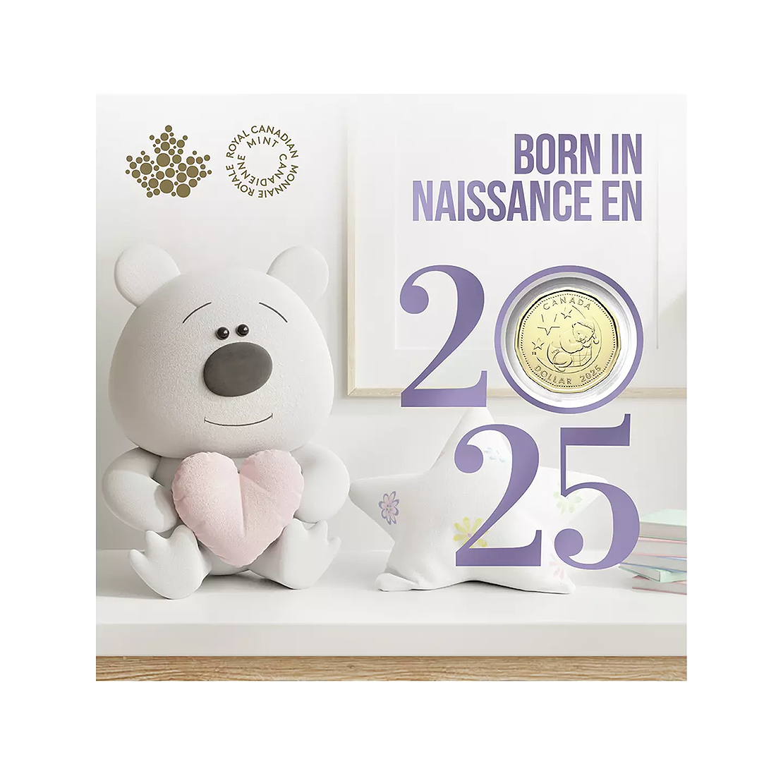 Pięciomonetowy zestaw, wyprodukowany przez Kanadyjską Mennicę Królewską, będący wyjątkowym pomysłem na uczczenie narodzin dziecka w 2025 roku. Kluczowym elementem tej kolekcji jest ekskluzywna moneta o nominale 1 dolara z unikatowym wzorem misia polarnego, dostępna wyłącznie w tym zestawie. Oprócz niej, w zestawie znajdują się nowe monety o nominałach 2 dolarów, 25 centów, 10 centów i 5 centów, wszystkie wybite w 2025 roku. Całość zapakowana jest w elegancką kartę okolicznościową z miejscem na wpisanie informacji o narodzinach dziecka oraz osobistych życzeń, co czyni ten zestaw wyjątkową i wartościową pamiątką. Limitowana edycja obejmuje 100 000 zestawów.