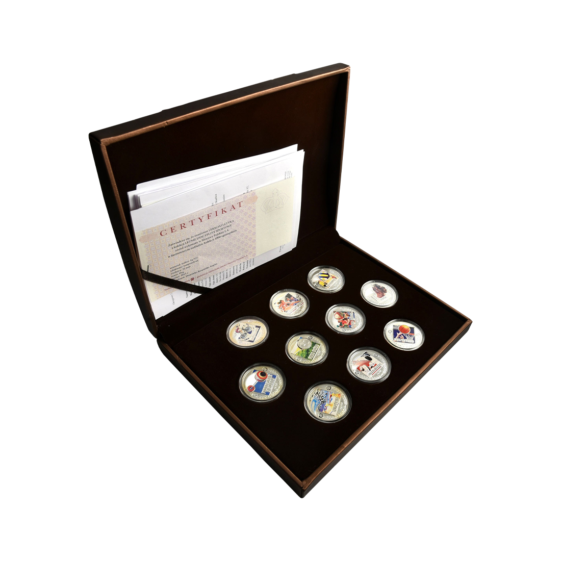 Spójna kolekcja dziesięciu srebrnych monet, które razem tworzą efektowną i dynamiczną prezentację różnorodnych letnich dyscyplin sportowych. Każda z nich przedstawia inny sport, począwszy od podnoszenia ciężarów, kolarstwa i pływania, przez lekką atletykę i piłkę ręczną, szermierkę, boks, piłkę nożną, koszykówkę, aż po siatkówkę. Awersy zostały zaprojektowane tak, aby oddać charakter i ruch typowy dla każdej dyscypliny, ukazując sportowców w akcji, co nadaje całemu zestawowi dynamicznego i energetycznego wyrazu. Wszystkie monety razem tworzą spójną narrację, pokazującą różnorodność i piękno sportu olimpijskiego, a jednocześnie harmonijnie komponują się jako kolekcja prezentowa lub numizmatyczna.