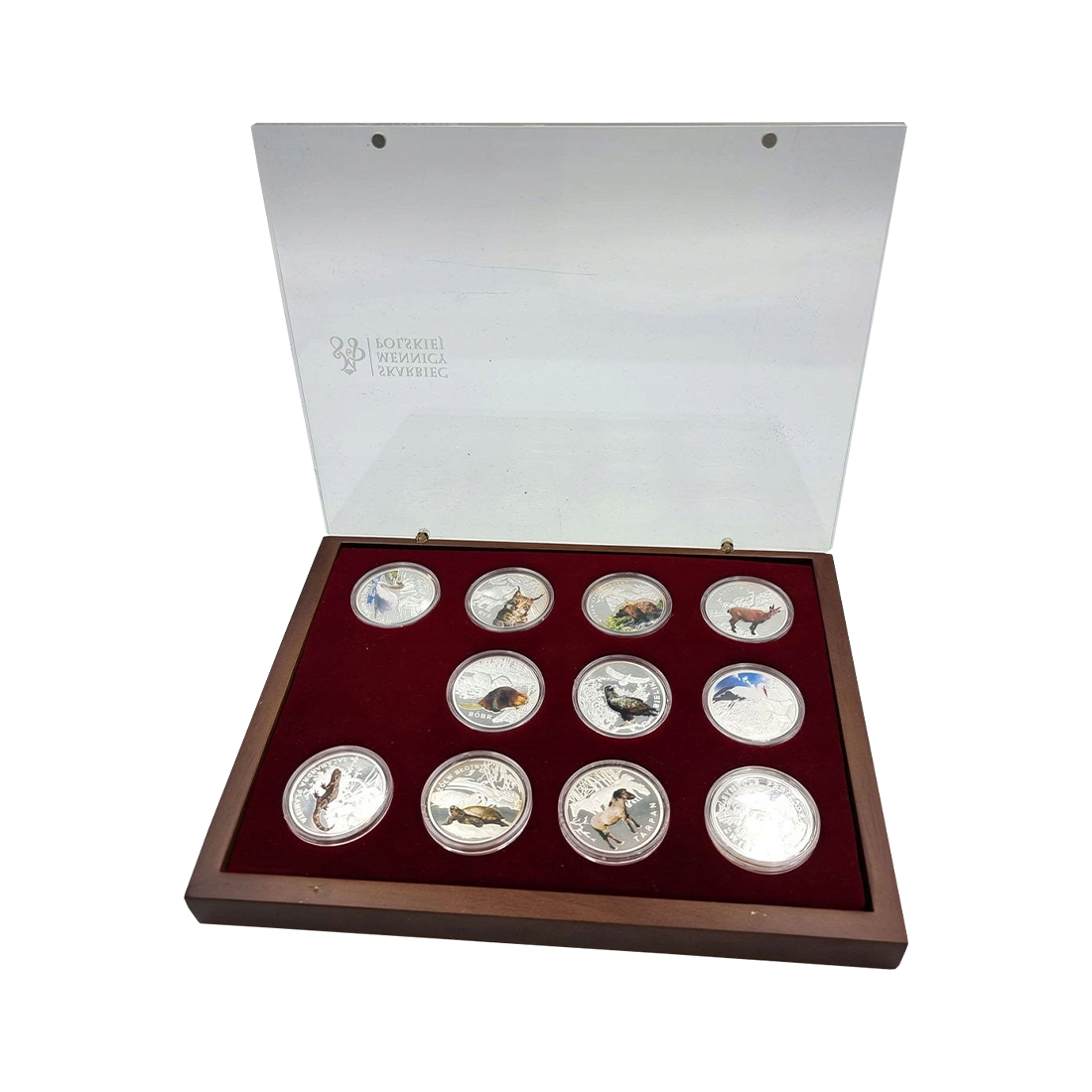 Kolekcja 11 monet wybitych przez Mennicę Polską w 2009 roku. Każda z nich jest ozdobiona wielobarwnymi wizerunkami charakterystycznych dla Polski zwierząt. W skład kolekcji wchodzą: bielik, bocian biały, bóbr, kozica, łabędź niemy, niedźwiedź brunatny, ryś, salamandra plamista, tarpani, żółw błotny i żubr. Każdy numizmat jest indywidualnie zapakowany w elegancką kasetę i posiada certyfikat autentyczności. Zestaw ten stanowi doskonały wybór dla kolekcjonerów, miłośników przyrody oraz osób poszukujących unikalnych i edukacyjnych prezentów.