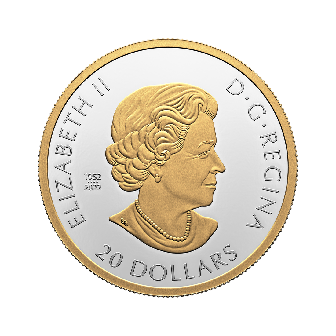 Awers przedstawia pozłacaną podobiznę królowej Elżbiety II autorstwa Susanny Blunt. Znajdują się tam cztery perły, które symbolizują cztery wizerunki zdobiące kanadyjskie monety w okresie jej rządów oraz datę panowania królowej.