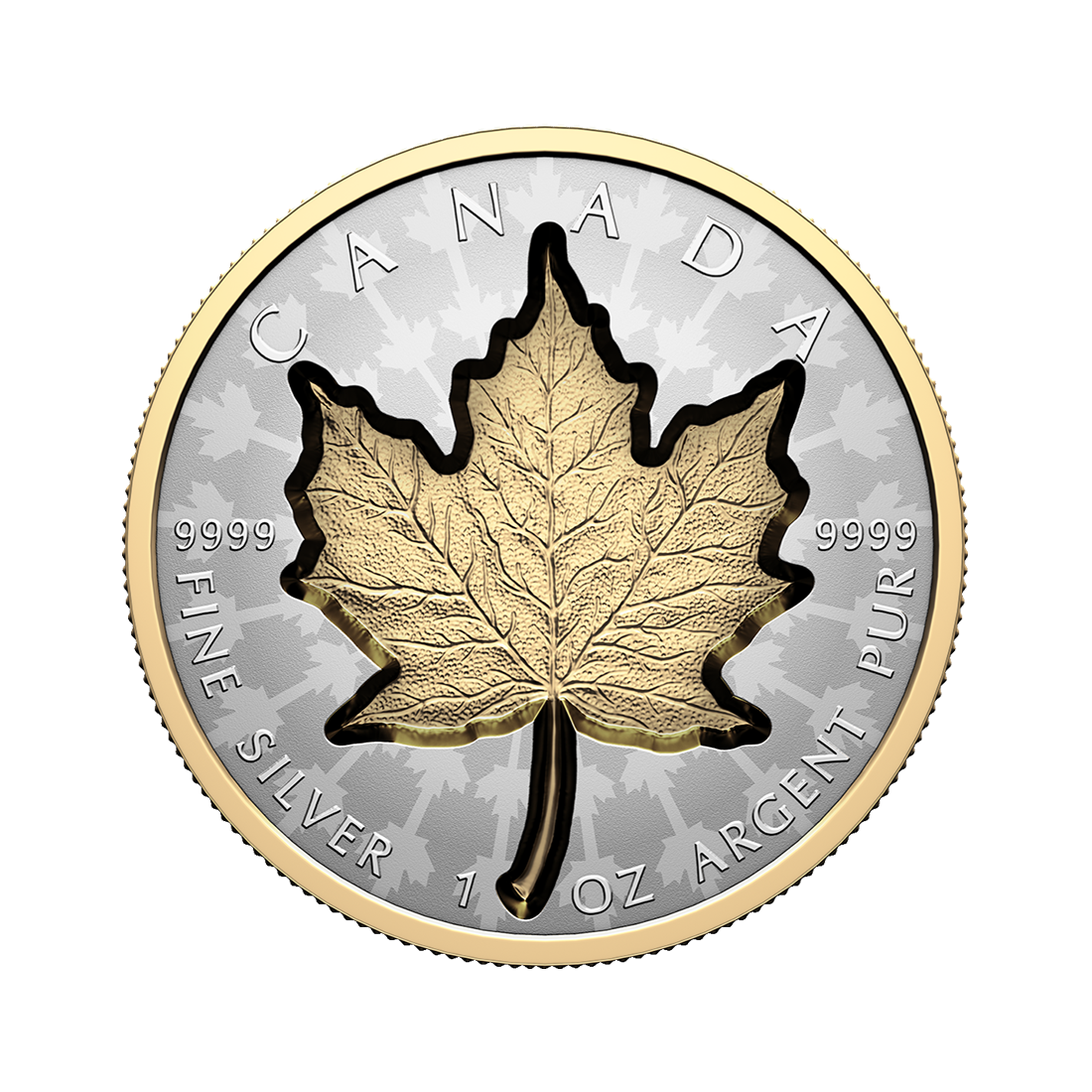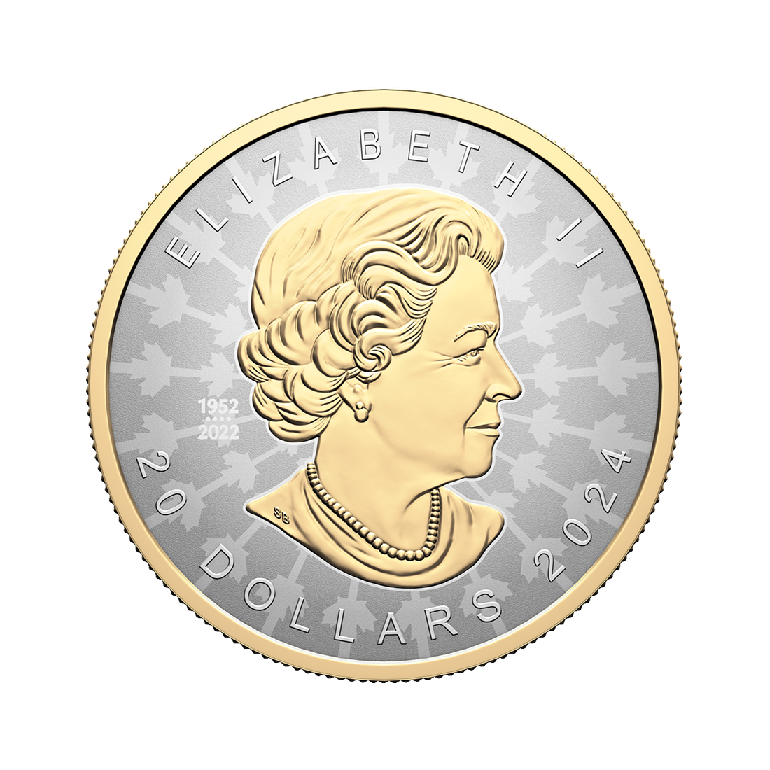 To już 45. rocznica debiutu monet z serii Kanadyjski Liść Klonowy. Na monecie zastosowano selektywne złocenie, dzięki czemu uzyskano efekt promieni słonecznych. Te złote blaski przyciągają wzrok, kierując uwagę na relief, który otoczony jest nowym wzorem „bursztynowego klonu”. Całość emanuje świeżością i energią, nadając polotu klasycznemu wzorowi bulionowego liścia klonowego Waltera Otta w 2024 roku.
