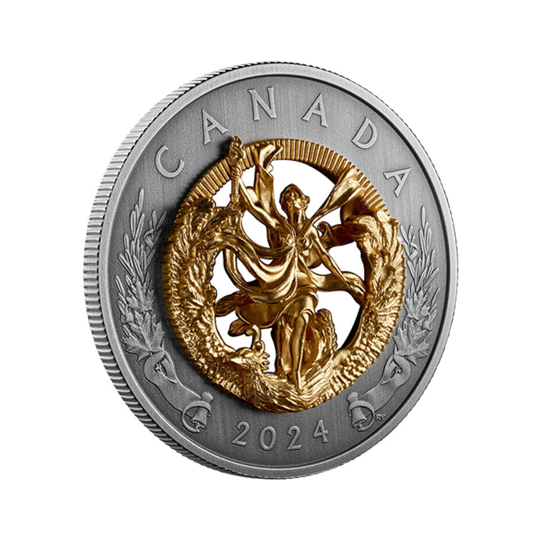 Moneta inspirowana jest Narodowym Pomnikiem Wojennym w Ottawie. Jest on potężnym symbolem odwagi i nadziei, okazywanych przez pokolenia Kanadyjczyków, którzy walczyli o wolność. Pomnik ten zainspirował do stworzenia alegorii 2024, która oprócz wątku historycznego, przedstawia również najnowsze osiągnięcia w zakresie innowacji. Jest to kontynuacja Alegorii Pokoju z 2023 r. Moneta ta, limitowana do zaledwie 1400 sztuk na całym świecie, jest nie tylko hołdem dla wolności, ale także kolekcjonerskim dziełem nowoczesnego rzemiosła z Królewskiej Mennicy Kanadyjskiej.
