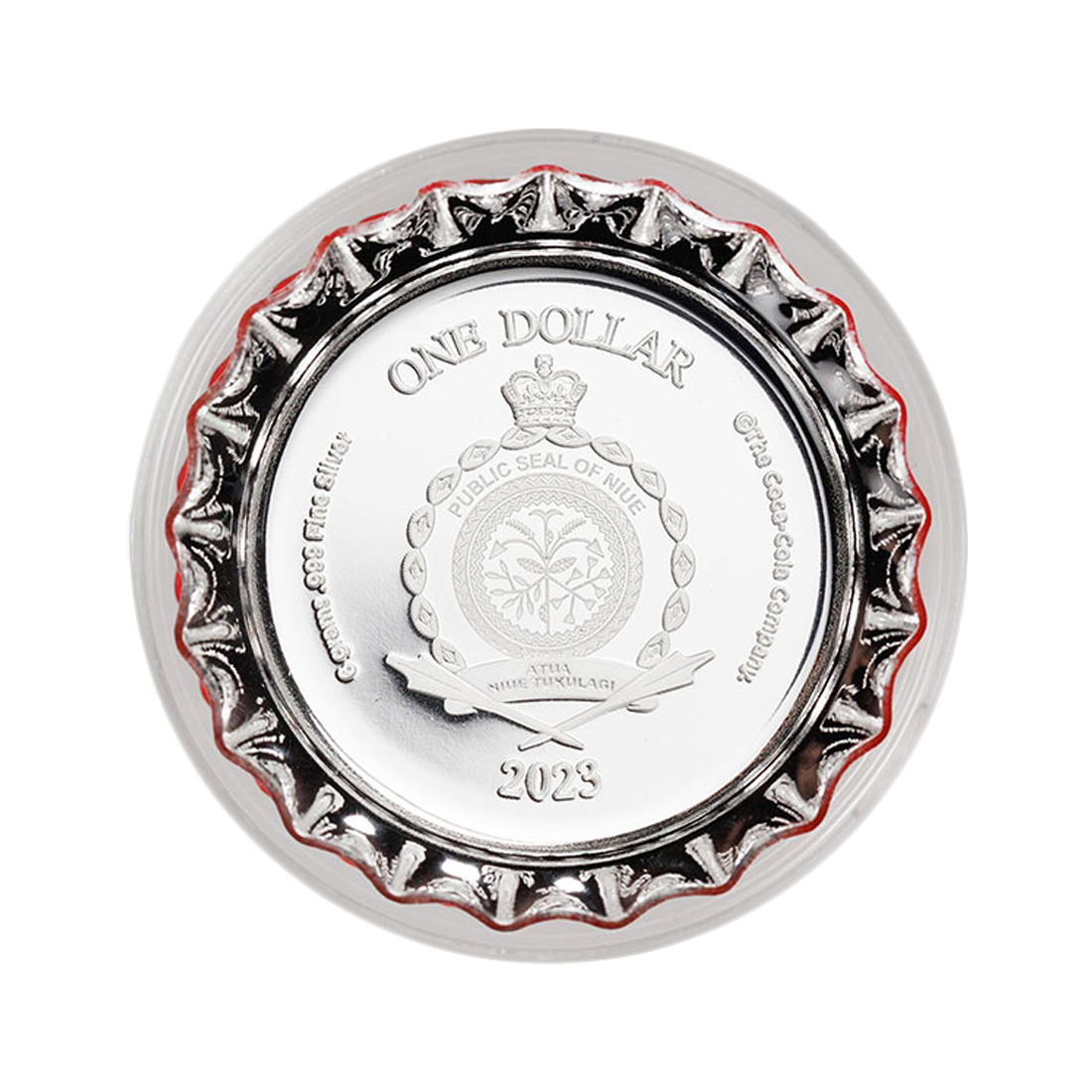 Srebrny kapsel Coca-Cola to wyjątkowa i niezwykle kolekcjonerska srebrna moneta zaprojektowana tak, aby przypominała kształtem i kolorem zakrętkę od butelki Coca-Coli. Moneta jest częścią serii, która oddaje hołd kultowej, globalnej marce Coca-Cola, znanej z charakterystycznego czerwono-białego brandingu i klasycznego projektu szklanej butelki. Jest doskonałym przykładem tego, jak współczesne mennictwo może tworzyć przedmioty kolekcjonerskie, które upamiętniają ikony kultury, łącząc urok metali szlachetnych z nostalgią i rozpoznawalnością jednej z najsłynniejszych marek na świecie.
