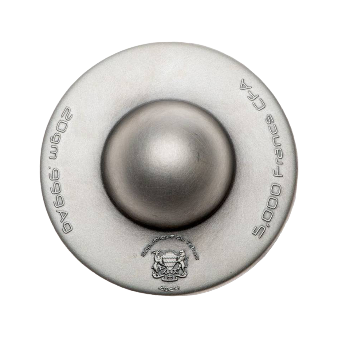 Moneta wybita jest z czystego srebra i posiada nominał 5000 franków. Wykończenie Brilliant Uncirculated (BU) zapewnia, że ma ostre, szczegółowe wykończenie o pięknym, lśniącym wyglądzie. Wzór koncentruje się wokół tematu UFO i przedstawia latający spodek. To, co wyróżnia tę monetę, to jej budowa 3D, która przestawia konstrukcję statku UFO, tworząc iluzję, że lewituje on nad powierzchnią. Awers monety zawiera herb Czadu, wraz z nominałem i rokiem emisji. Moneta jest nie tylko prawnym środkiem płatniczym, ale także fascynującym przedmiotem dla kolekcjonerów, zwłaszcza tych zainteresowanych tematyką nieznanego świata. Połączenie wysokiej jakości srebra i uderzającego, nieziemskiego wzoru sprawia, że jest to wyjątkowy dodatek do każdej kolekcji.