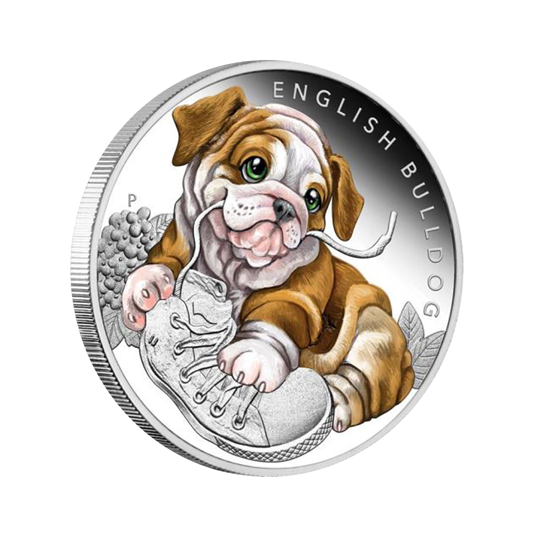 Srebrna moneta kolekcjonerska Buldog Angielski jest czwartą emisją Perth Mint z bestsellerowej serii Szczeniaki, wprowadzonej z myślą o wszystkich kolekcjonerach kochających psy. Numizmat został wybity ze srebra najwyższej próby 999,9. W zestawie z każdym egzemplarzem znajdują się eleganckie etui oraz numerowany certyfikat autentyczności.
