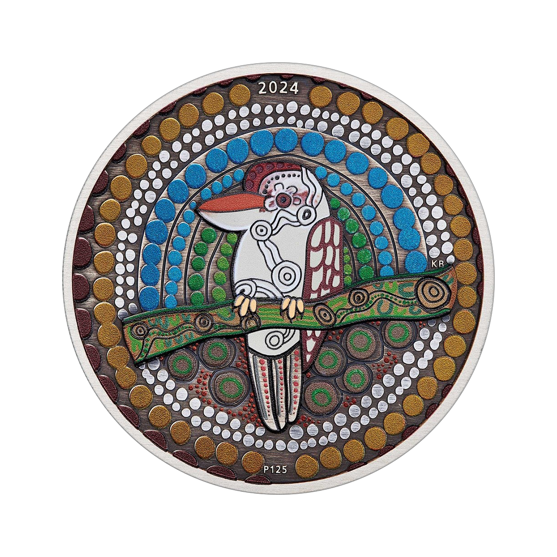 Srebrna moneta jest częścią długoletniej serii the Perth Mint, upamiętniającej kookaburrę - ptaka będącego symbolem australijskiej przyrody. Wprowadzona w 1990 r. seria monet Kookaburra stała się ulubioną wśród kolekcjonerów na całym świecie. Wydawana jest co roku, a każde wydanie przedstawia nowy, artystyczny wizerunek ptaka. Edycja z 2024 roku wyróżnia się antycznym wykończeniem i kolorowymi kropkami, nawiązującymi do australijskiej przyrody. Kontynuuje menniczą tradycję, uchwycając naturalne piękno ptaka i otaczającego go naturalnego krajobrazu Australii.