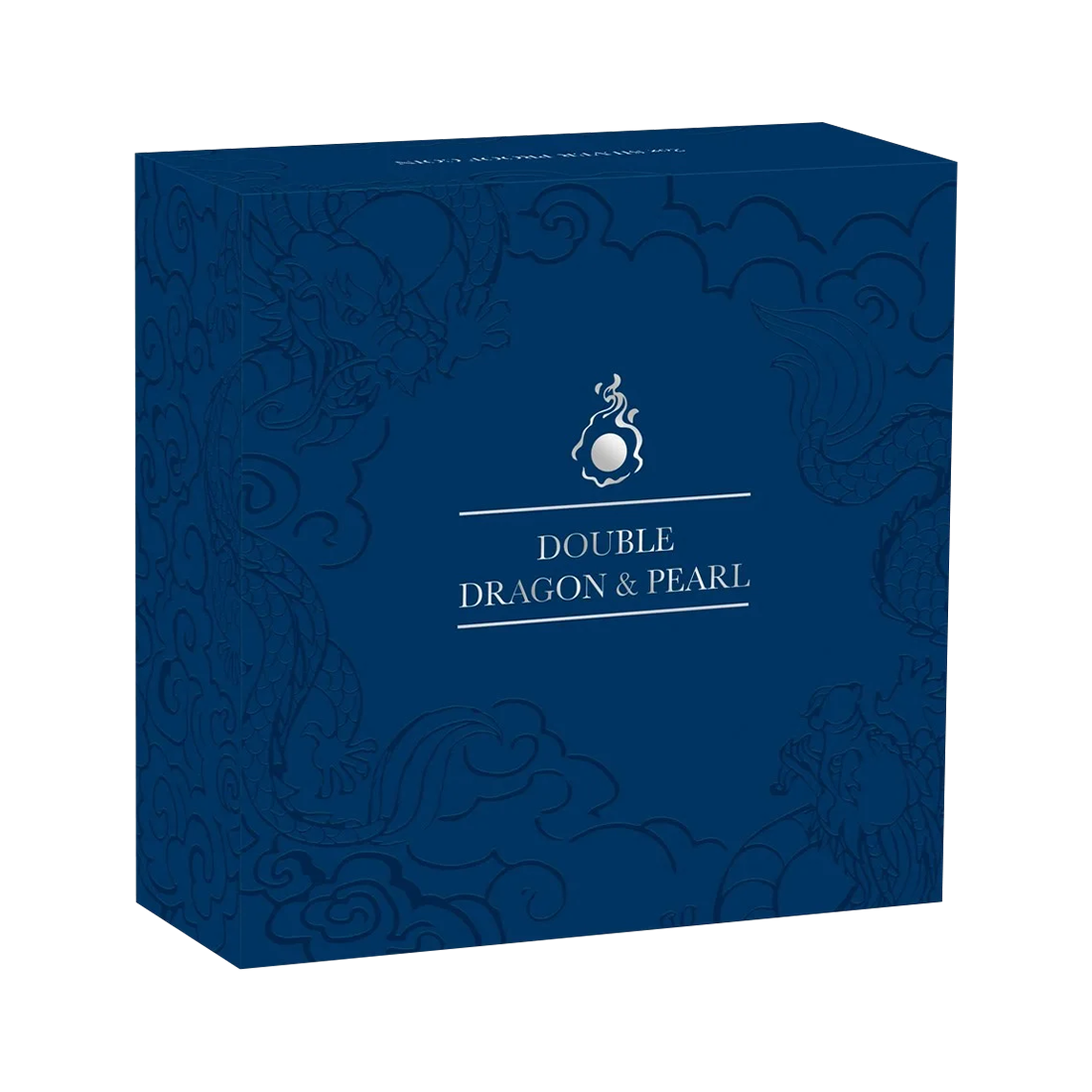 Egzemplarz przedstawia dwa szczegółowe smoki, otaczające centralną perłę, symbolizującą mądrość i moc w kulturze chińskiej. Wykonana z 2 uncji czystego srebra o czystości 99,99%, moneta jest wykończona w wysokim standardzie proof z lustrzanym tłem i matowymi detalami. Perłowy element centralny dodaje luksusowego akcentu, dzięki czemu jest wyróżniającym się przedmiotem kolekcjonerskim dla osób zainteresowanych mitologią i szlachetnym biciem monet.