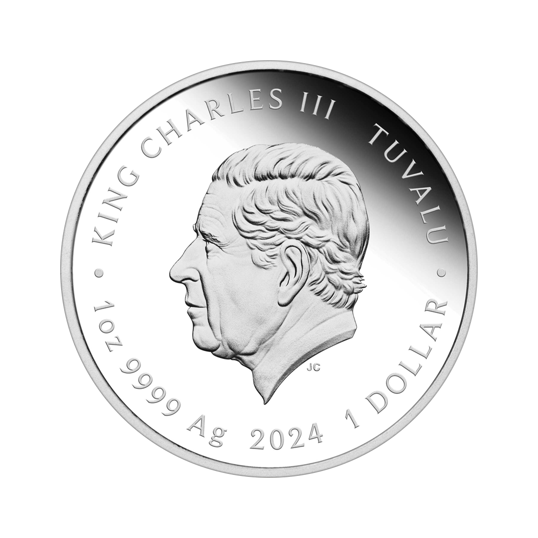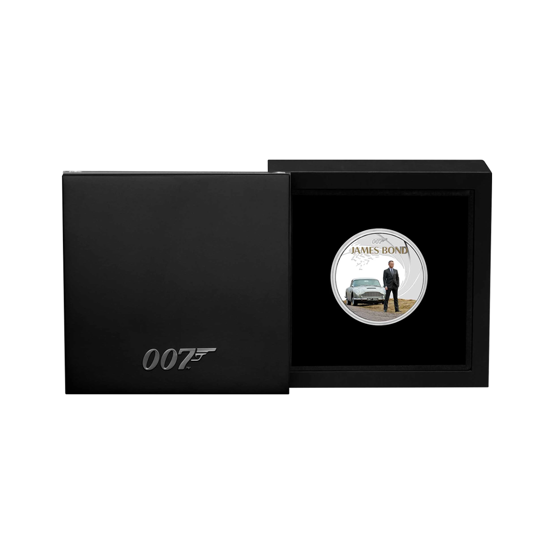 Egzemplarz z 2024 roku wyróżnia się eleganckim i wyrazistym designem. Na rewersie widnieje kolorowy wizerunek Daniela Craiga w garniturze, uchwyconego w ikonicznej pozie agenta 007 z kultowym samochodem w tle, co podkreśla jego charyzmę, siłę i tajemniczość. Tło monety ozdobione jest stylizowanym wzorem nawiązującym do charakterystycznego otworu lufy pistoletu, który stał się symbolem serii filmów o Bondzie. Całość utrzymana jest w klasycznej palecie barw, która dodatkowo eksponuje srebrne wykończenie monety. Awers tradycyjnie przedstawia wizerunek króla Karola III, wraz z nominałem, wagą i czystością srebra. Gładkie krawędzie oraz doskonałe wykończenie w wersji proof nadają monecie luksusowy charakter.