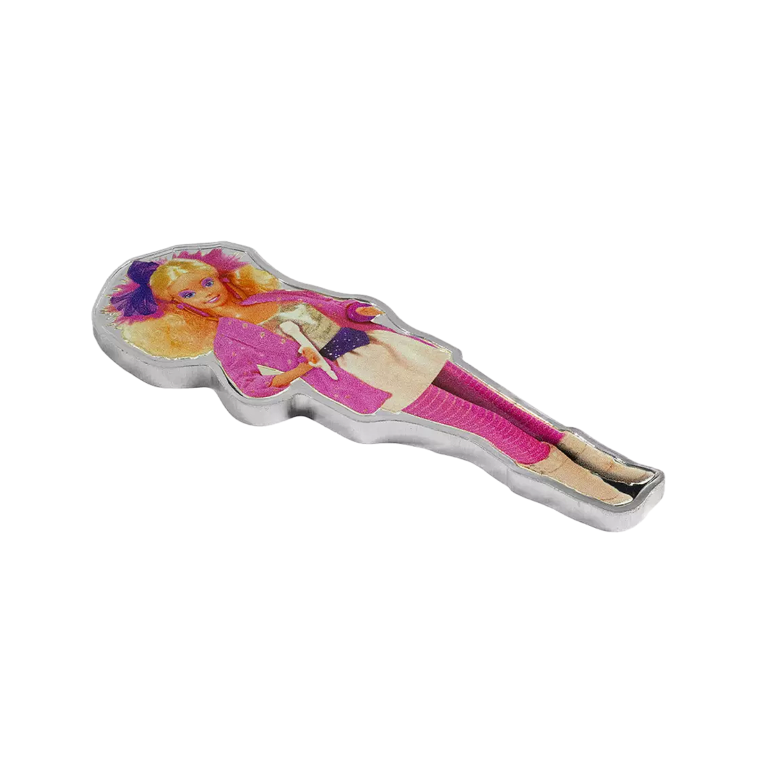 Nietuzinkowa moneta kolekcjonerska, wybita z jednej uncji czystego srebra, inspirowana popularną lalką Barbie. Zachwyca swoim unikalnym designem. Moneta ta nawiązuje do stylu lat 80. i kultowej linii lalek, a konkretnie do "Barbie and the Rockers", która była ikoną stylu i muzyki tamtego okresu. Jest doskonałym wyborem zarówno dla miłośników Barbie, jak i kolekcjonerów ceniących wyjątkowe, tematyczne edycje monet. Produkt został zapakowany w eleganckie pudełko kolekcjonerskie i stanowi świetny pomysł na prezent lub inwestycję.