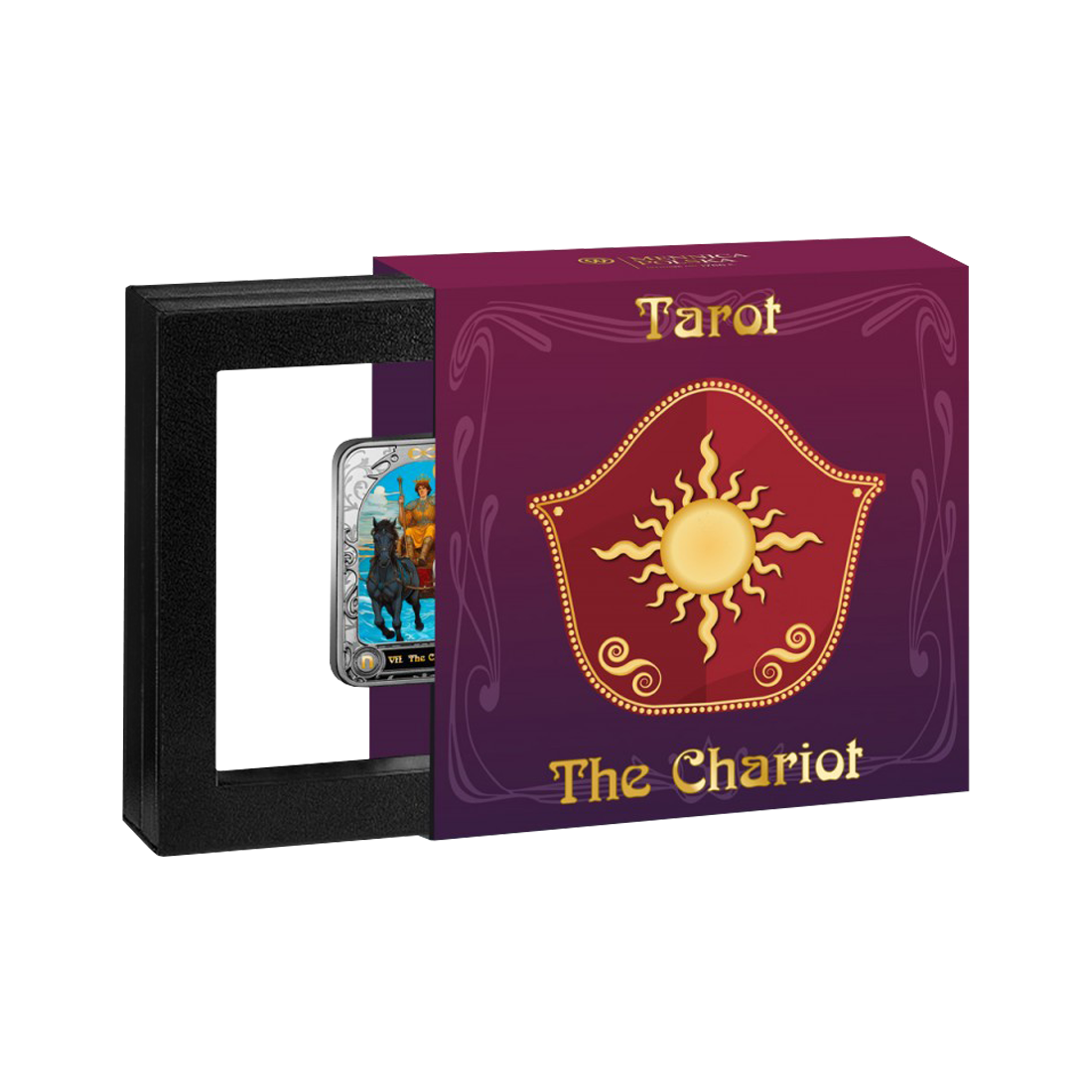 Pięknie wykonana srebrna moneta inspirowana kartą "Chariot" z tradycyjnego tarota jest pełna symboliki, która przekłada się na inspirującą wartość. Symbolizując determinację, siłę i odporność w obliczu życiowych wyzwań, moneta ta jest doskonałym przypomnieniem o triumfie nad przeciwnościami losu. Edycja Black Proof podkreśla głębię projektu dzięki matowemu wykończeniu, które kontrastuje z żywymi kolorami uzyskanymi poprzez cyfrowy druk, nadając detalom niespotykaną wyrazistość i trójwymiarowy efekt. Jej limitowany nakład, wynoszący jedynie 700 egzemplarzy, sprawia, że jest to nie tylko ozdoba kolekcji, ale także inwestycja, która z czasem zyskuje na wartości.