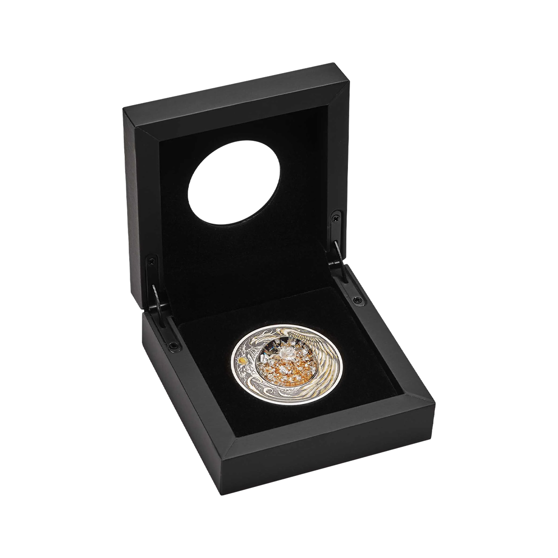 Niezwykły przedmiot kolekcjonerski, inspirowany legendarnym ptakiem Alicanto z chilijskiej mitologii. Mówi się, że to mityczne stworzenie, ze świetlistym ciałem, zamieszkuje pustynię Atakama. Według legend, prowadzi ono tych, którzy je spotkają, do ukrytych skarbów, jednak jeśli ściga się je z chciwością, ptak zaprowadzi poszukiwaczy na zagładę. Moneta wykonana jest z czystego srebra. Posiada oszałamiające, antyczne wykończenia z kolorowymi akcentami, które podkreślają mistyczny blask Alicanto na tle księżyca. Moneta jest prawnym środkiem płatniczym w Tuvalu i jest prezentowana w specjalnie zaprojektowanym etui z numerowanym certyfikatem autentyczności.