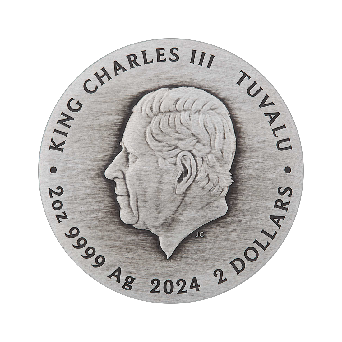 Moneta ma okrągły kształt z wykończeniem w stylu antycznym, które nadaje jej unikatowego, postarzającego wyglądu. Rewers przedstawia kolorową scenę z głównymi bohaterami „Wojowniczych Żółwi Ninja”. Każdy żółw jest szczegółowo odwzorowany, w charakterystycznym stroju i z bronią. Na obrzeżu rewersu znajduje się napis, upamiętniający 40. rocznicę serii. Awers monety zdobi wizerunek Króla Karola III, otoczony inskrypcjami określającymi nominał, rok emisji oraz próby srebra. Całość kompozycji wyróżnia się precyzją wykonania i głębokim reliefem, który podkreśla detale i sprawia, że moneta jest atrakcyjna wizualnie.