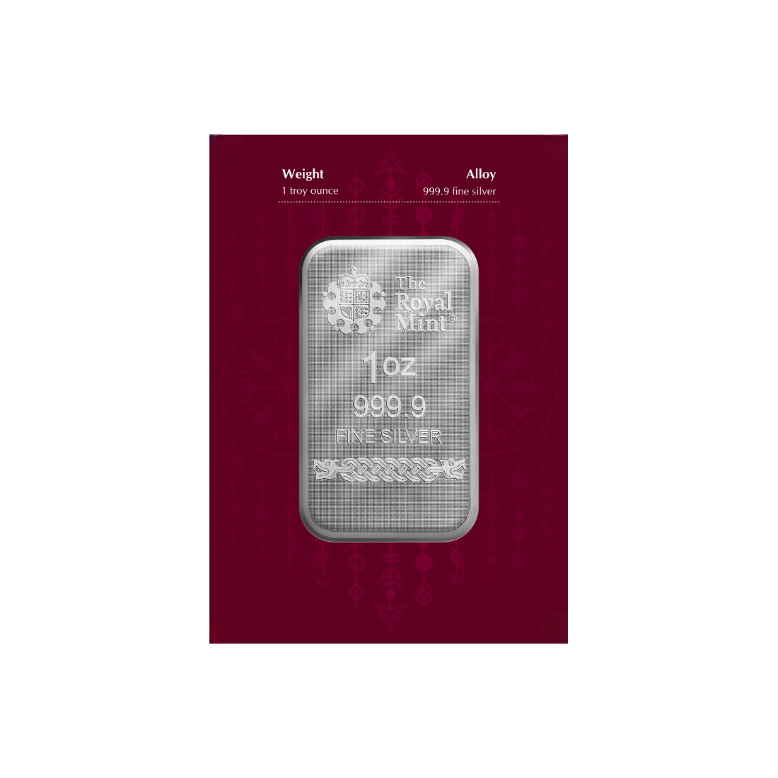 Sztabka o wadze jednej uncji, wykonana ze srebra, o prostokątnym kształcie, posiadająca nowoczesny i masywny wygląd. Na jej powierzchni znajduje się wizerunek Odyna, nordyckiego boga, którego portret jest szczegółowy i wyrazisty. Sztabka jest starannie wybita, a jej powierzchnia ma wyraźny połysk, który kontrastuje z matowymi, dekoracyjnymi detalami. Całość wykończona jest z dużą precyzją, co sprawia, że moneta ma wyjątkowy, profesjonalny charakter.