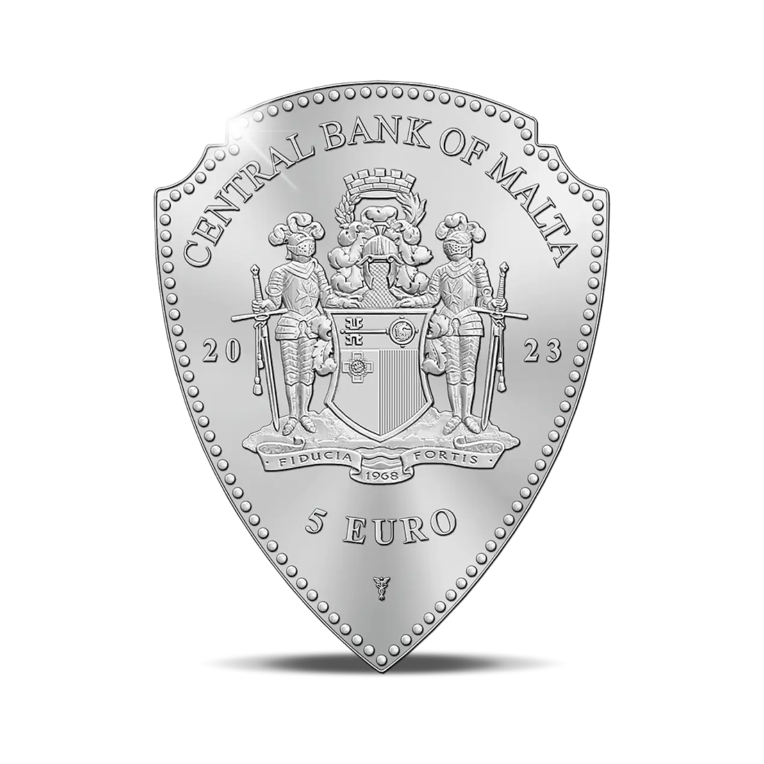 Maltańska moneta w kształcie jednego z pierwszych logo używanych przez Warner Bros. Tarcza, z wyraźnie zarysowanymi konturami, przedstawia wizerunek dawnego budynku wytwórni oraz litery W-B. Ta pamiątkowa moneta o wartości nominalnej 5 €, posiada niezwykle dopracowany design w jakości proof, charakteryzujący się lustrzanym tłem i matowymi detalami. Na awersie znajduje się herb Malty, otoczony subtelnym, eleganckim ornamentem, wraz z informacją o nominale i roku emisji. Całość ma klasyczną, srebrzystą barwę, której wyjątkowy połysk podkreśla ekskluzywny charakter projektu. Moneta zapakowana jest w oryginalne opakowanie kolekcjonerskie, które uzupełnia jej elegancki wygląd.
