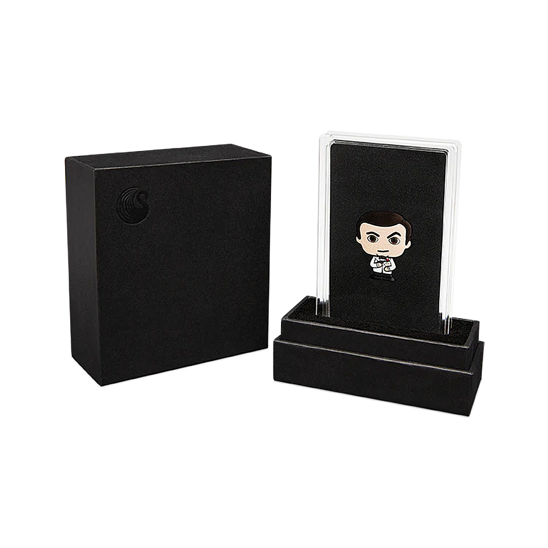 Wyjątkowy numizmat, nawiązujący do kultowej postaci agenta 007. Moneta wyróżnia się oryginalnym kształtem, starannym wykonaniem i wzornictwem. Na rewersie przedstawiono kreskówkowy wizerunek Jamesa Bonda w eleganckim białym smokingu, trzymającego kieliszek martini – charakterystyczny symbol jego wyrafinowanego stylu. Moneta jest limitowana do 2 500 egzemplarzy na całym świecie. Każda z nich jest prezentowana w przezroczystym, akrylowym etui, które umożliwia podziwianie zarówno awersu, jak i rewersu, oraz jest opatrzona numerowanym certyfikatem autentyczności. Całość zapakowana jest w markowe pudełko, co czyni ją atrakcyjnym dodatkiem do kolekcji każdego miłośnika Jamesa Bonda.