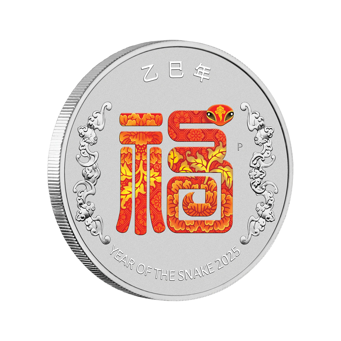 Srebrna, kolekcjonerska moneta od The Perth Mint, będąca częścią serii inspirowanej chińskim kalendarzem księżycowym. Projekt ukazuje węża, który według symboliki zodiaku jest znakiem roku 2025. Zwierzę utożsamiane jest z mądrością, intuicją i transformacją. Jest on wkomponowany w znak 福 (Fu), symbolizujący szczęście i dobrobyt, co jeszcze bardziej podkreśla wyjątkowe znaczenie produktu. Numizmat został wydany w limitowanej edycji 5000 egzemplarzy i posiada status prawnego środka płatniczego w Australii. Ze względu na wysoką jakość wykonania oraz kulturową i symboliczną wartość, stanowi atrakcyjny wybór zarówno dla kolekcjonerów, jak i inwestorów.