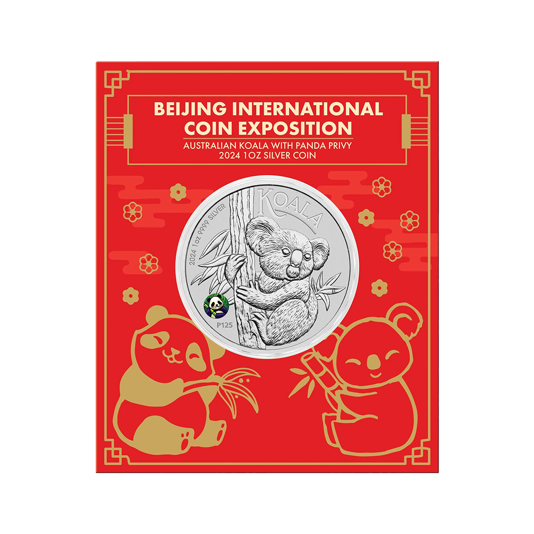 Moneta wybita przez The Perth Mint z okazji „Beijing International Coin Exposition”, odbywającej się od 1 do 3 listopada 2024 roku. Wykonana została z jednej uncji czystego srebra i łączy w sobie symbole fauny Australii i Chin, podkreślając przyjaźń między tymi krajami. Głównym motywem projektu jest uroczy koala wspinający się na drzewo eukaliptusowe, a także kolorowy znak privy z pandą trzymającą bambus. Moneta jest prawnym środkiem płatniczym w Australii, a jej limitowany nakład wynosi zaledwie 3000 sztuk, co czyni ją wyjątkowym i cennym nabytkiem dla kolekcjonerów. Dodatkowo, prezentowana jest w specjalnym opakowaniu z motywami koali i pandy, co jeszcze bardziej podkreśla wyjątkowy charakter wydania.