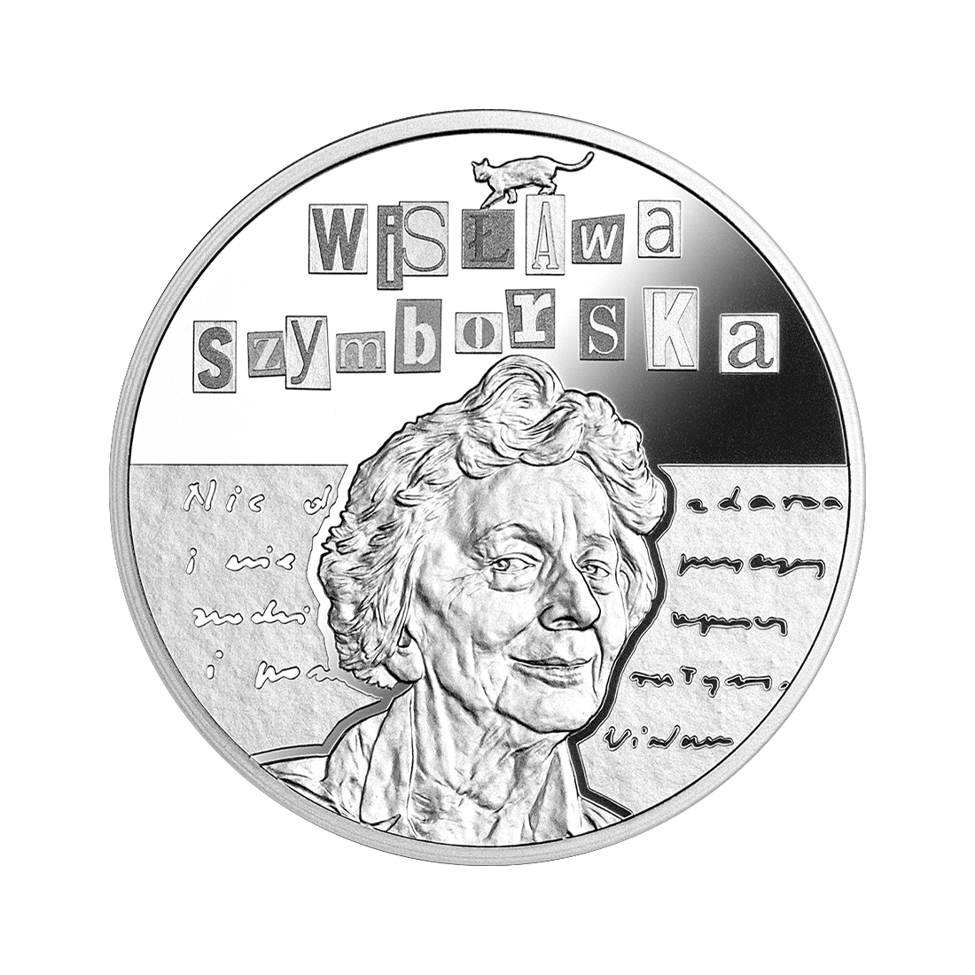 Moneta przedstawia portret Wisławy Szymborskiej, na tle subtelnych, artystycznych elementów, odzwierciedlających jej twórczość literacką. W centralnej części znajduje się jej wizerunek, a wokół niego umieszczono detale związane z jej dorobkiem, nawiązujące do symboliki literackiej i poetyckiej. Ciekawym elementem projektu jest kot, który subtelnie skrada się po literach w nazwisku noblistki. Jest to nawiązanie do jednego z jej wybitnych dzieł „Kot w pustym mieszkaniu”. Na awersie monety znajdują się oznaczenia eminentna, rok wydania oraz nominał. Umieszczona jest z eleganckim etui, nawiązującym do projektu numizmatu. Całość charakteryzuje się eleganckim i minimalistycznym stylem, który podkreśla rangę tej wyjątkowej postaci w polskiej kulturze.
