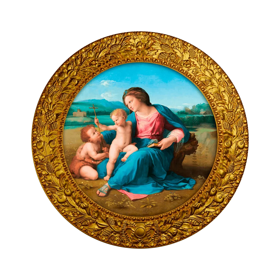 Moneta nawiązuje do twórczości jednego z najwybitniejszych malarzy renesansu, Rafaela Santi, żyjącego w latach 1483–1520. Jego dzieła, pełne harmonii i doskonałości kompozycyjnej, ugruntowały jego pozycję jako jednego z najważniejszych artystów epoki. Inspiracją dla monety jest konkretnie obraz "Alba Madonna", namalowany ok. 1510 roku. Jest to jedno z jego najbardziej znanych przedstawień Madonny z Dzieciątkiem i św. Janem Chrzcicielem. Obraz wyróżnia się doskonałą techniką, subtelną grą światłocienia oraz łagodnością postaci, które są charakterystyczne dla stylu Rafaela.