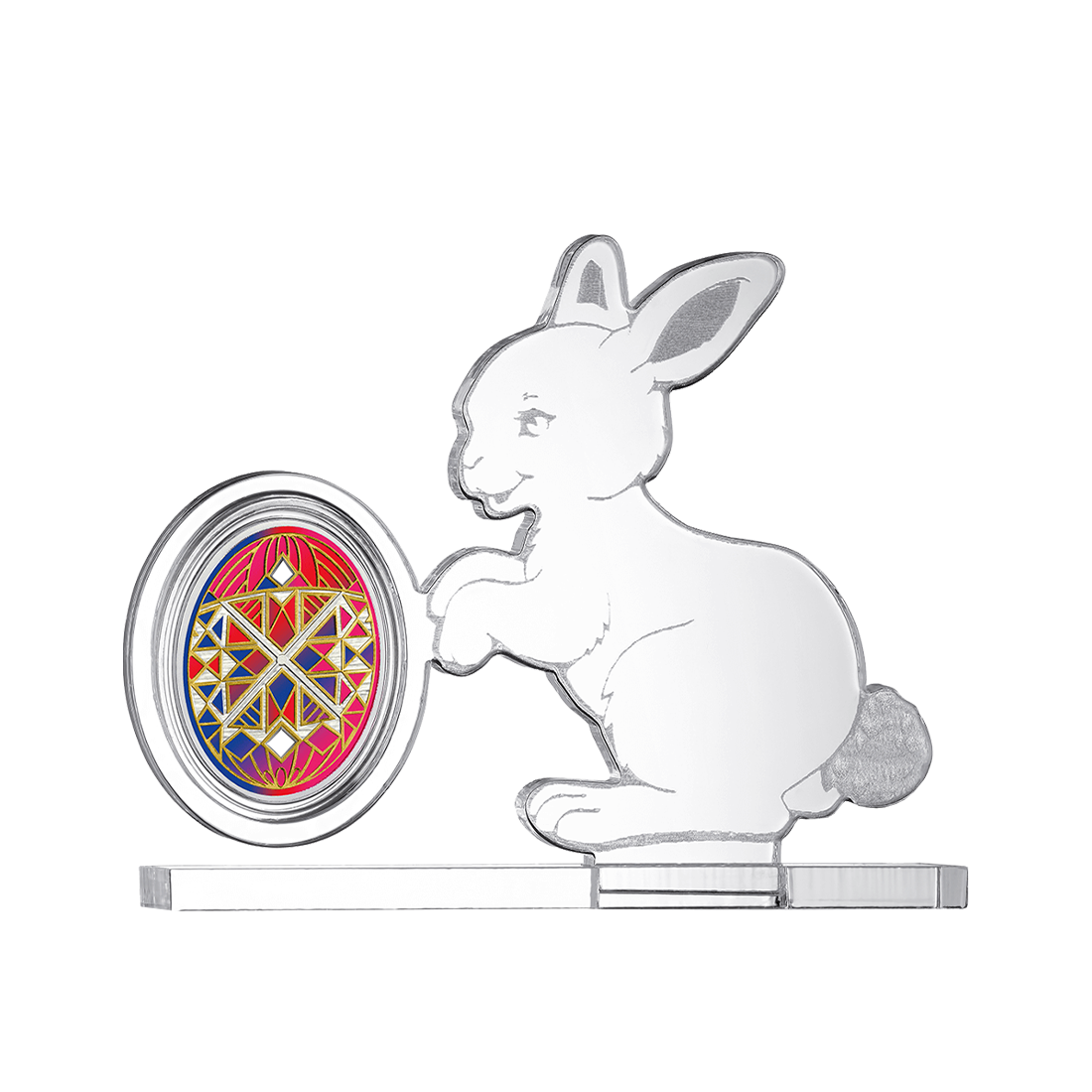 Numizmat ma nietypowy, eliptyczny kształt, który wyróżnia projekt spośród klasycznych monet. Jego powierzchnia zdobiona jest złocistym ornamentem, który nawiązuje do tradycyjnych wzorów wielkanocnych. Awers zdobi kolorowy nadruk przedstawiający wielkanocne motywy. Zdobienia wykonano techniką cyfrową, dzięki czemu uzyskano intensywne barwy i precyzyjne detale. Nietuzinkowym elementem monety są dwa symetryczne, kwadratowe otwory wycięte w jej strukturze, dodające jej oryginalności i mogące symbolizować otwarte okna do wiosennej radości. Całość tworzy efektowną, świąteczną kompozycję, która może być eleganckim upominkiem na Wielkanoc.