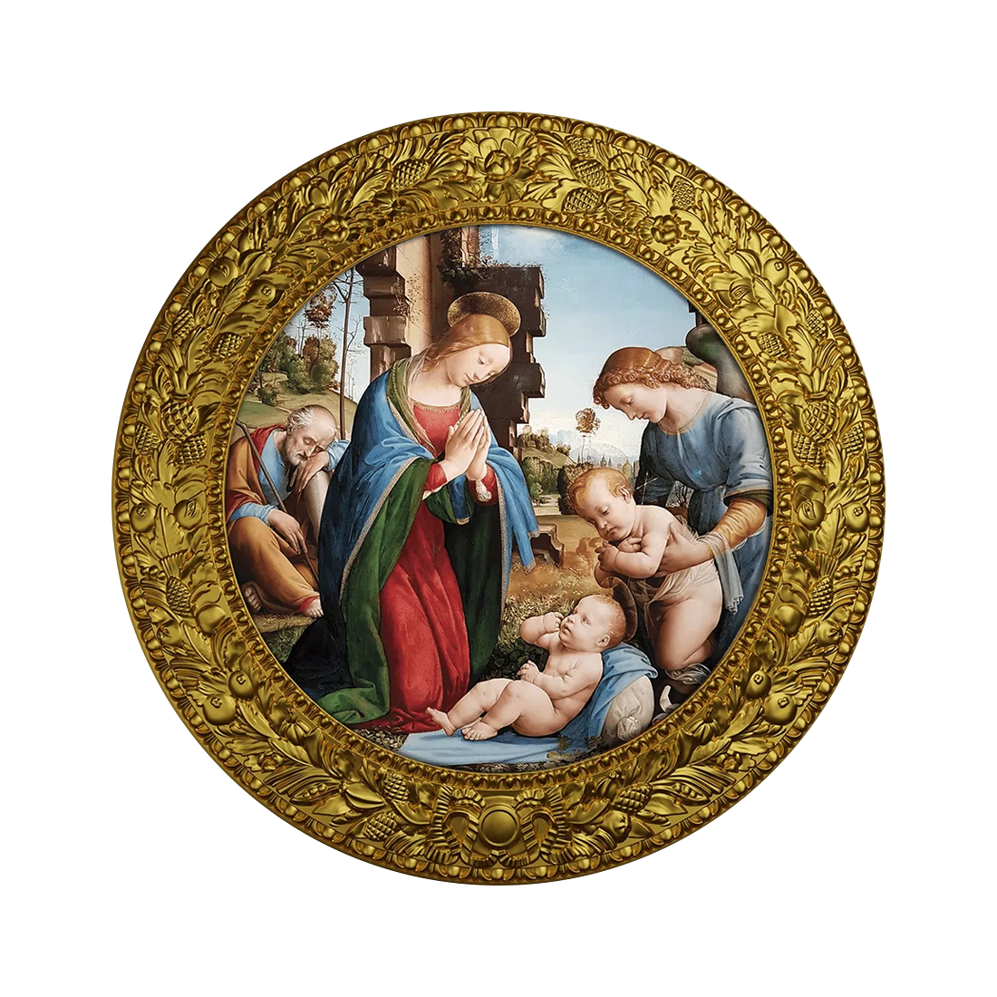 Projekt nawiązuje do twórczości Fra Bartolomeo, włoskiego malarza renesansowego żyjącego w latach 1472–1517. Był on członkiem Zakonu Dominikanów i znanym przedstawicielem szkoły florenckiej, łączącym wpływy Leonarda da Vinci, Rafaela i Michała Anioła. Jego obrazy cechują się głęboką duchowością, harmonią kompozycji oraz subtelnym światłocieniem, co doskonale oddaje scena adoracji Dzieciątka Jezus. Motyw Madonny z Dzieciątkiem był jednym z kluczowych tematów sztuki sakralnej renesansu i często pojawiał się w malarstwie artysty. Jego dzieła odzwierciedlają zarówno klasyczne piękno, jak i religijną ekspresję, co sprawia, że do dziś cieszą się ogromnym uznaniem. Wprowadzenie tej sceny na srebrną monetę wpisuje się w tradycję upamiętniania wielkich dzieł sztuki i ich przesłania duchowego.